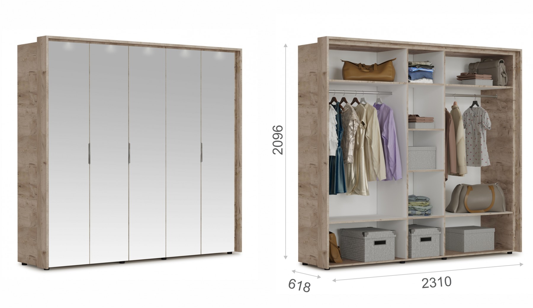 Современный распашной шкаф Джулия яркий представитель европейского минимализма. Это шкаф-конструктор, который позволяет выбрать подходящий вам размер, его наполнение и дизайн. На базе корпуса можно создать множество комбинаций: с зеркалами, с глухими глянцевыми фасадами, с порталом из ЛДСП 22мм или без него. Дополнительная опция – светодиодная подсветка, монтируется в верхней части портала над каждой дверью. Шкаф выполнен из экологически безопасных надежных материалов. Декором белым глянцевым фасадам High Gloss служит фрезерованный рисунок «Волна» - подчеркивает зеркальный блеск, делает интерьер спальни особенным и неповторимым. Торцевые ручки из хромированного металла - яркий акцент фасадов. Наполнение шкафа включает в себя вместительные полки и отделения со штангой, что позволяет создать систему для хранения вещей различного назначения. Идеально компонуются со всеми модулями системы Джулия.