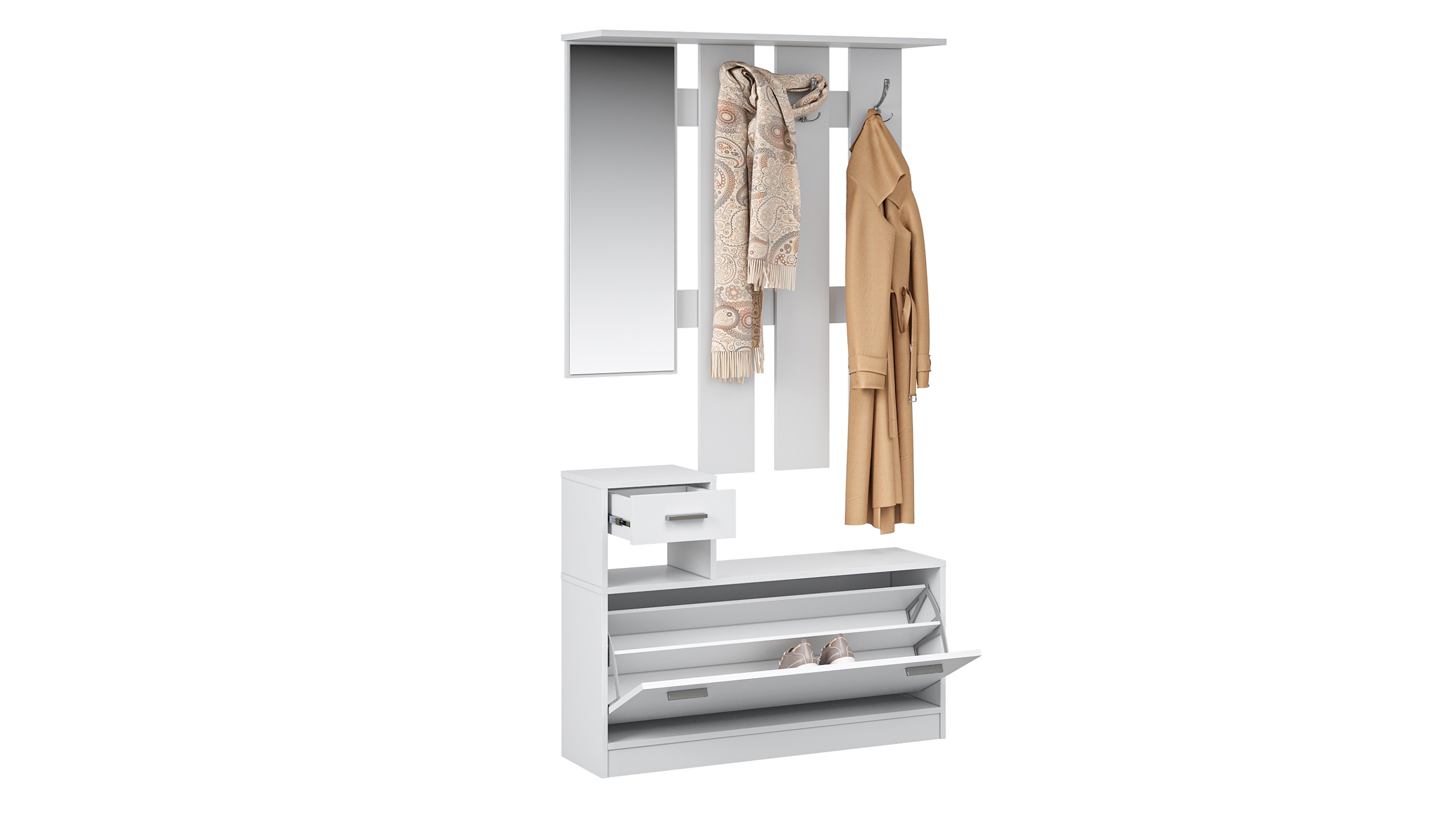 Шкаф «Интер» - это удобное и функциональное место для хранения верхней одежды, обуви, сумок. Выполнен в стиле минимализм: простота, строгая геометрия, отсутствие декора. Благодаря классической нейтральной цветовой гамме гармонично впишется в любой интерьер. Подойдет для небольшой прихожей. Может использоваться как отдельный модуль, так и в составе с прихожей «Интер».