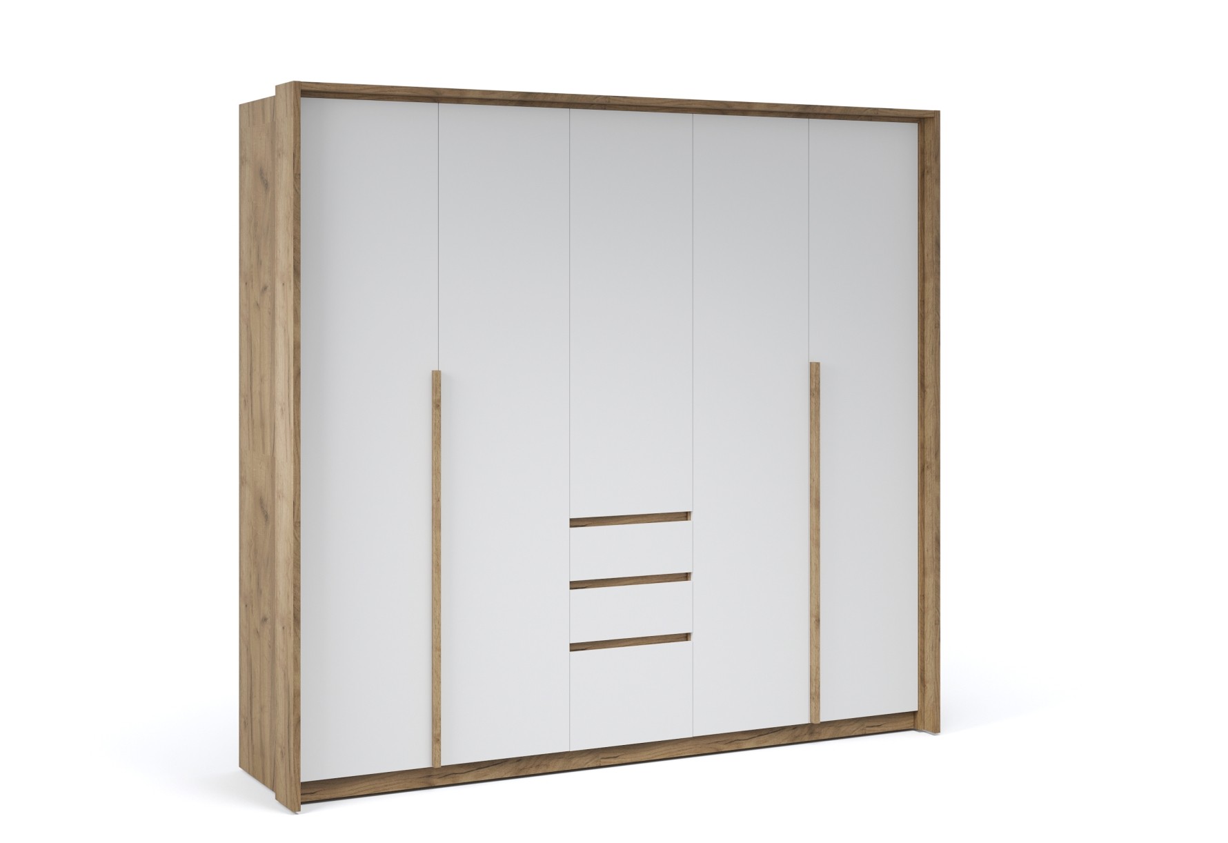 Функциональный распашной шкаф с массивными ручками контрастного цвета включает в себя вместительные полки и отделения со штангой, что позволяет создать систему для хранения вещей различного назначения. Встраиваемая в портал LED подсветка – оригинальное дизайнерское решение и дополнительный источник освещения. Современные цвета декора корпуса и белоснежный фасад добавят в жилое помещение света, уюта и комфорта. Идеально компонуется со всеми модулями системы Мишель.