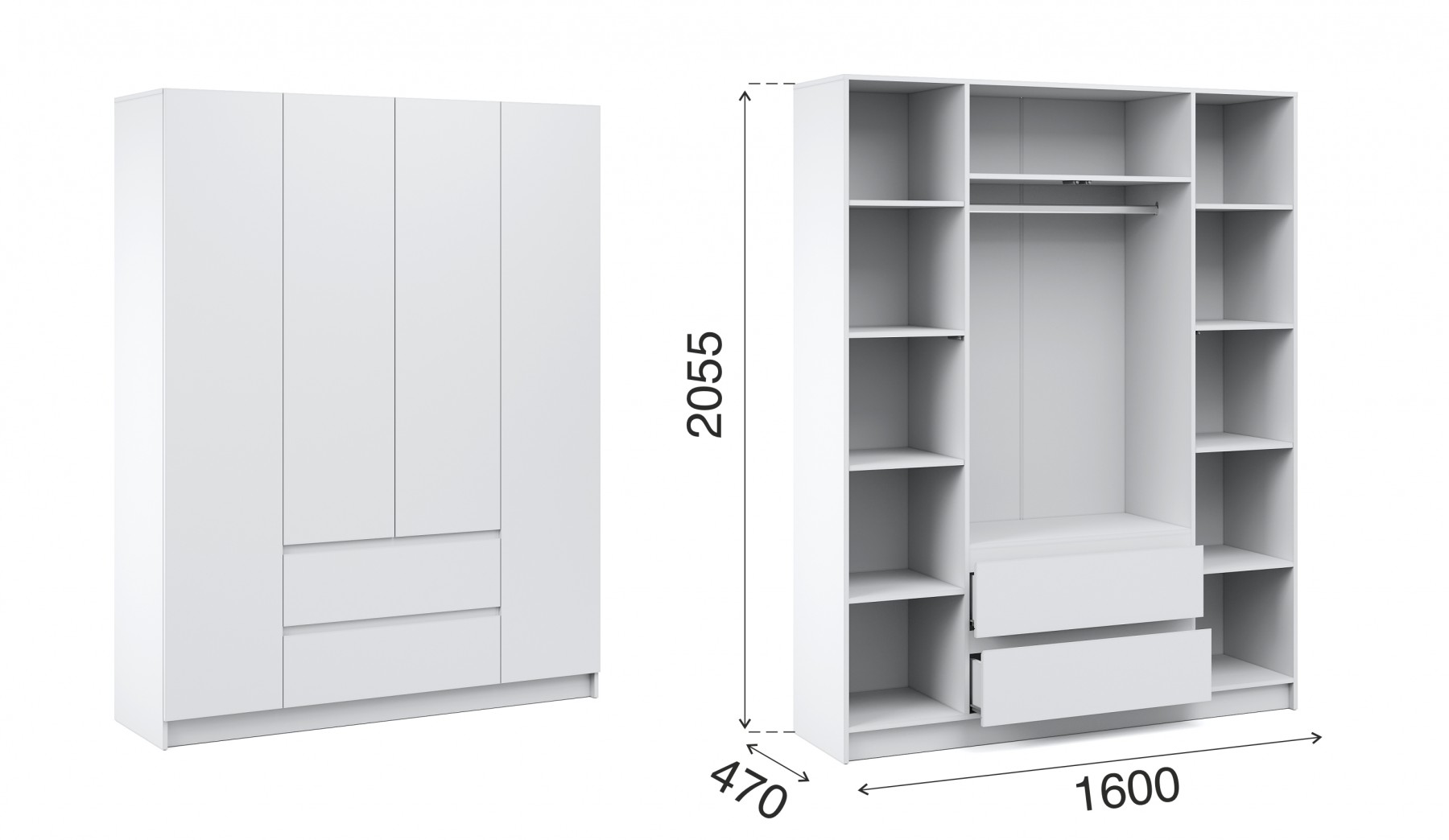 Шкафы для спальни идеально сочетаются с модулями детской, прихожей и гостиной серии «Оникс», позволяя легко создать единую систему хранения. Варианты исполнения: