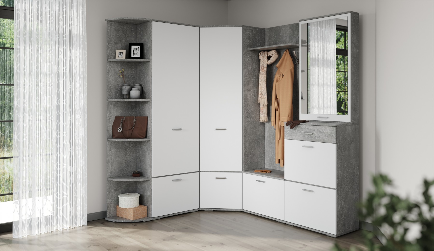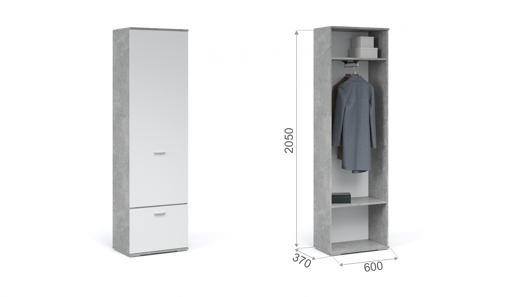 Платяной шкаф – оптимальное решение для небольшой прихожей, спальни или гостиной. Внутри предусмотрены секции для белья и отделение с поперечной металлической овальной штангой. Нейтральные цвета корпуса и фасадов всегда будут актуальны, создают особый комфорт и уют. Идеально компонуется со всеми модулями системы Виола. Мебель выполнена из экологичных материалов.