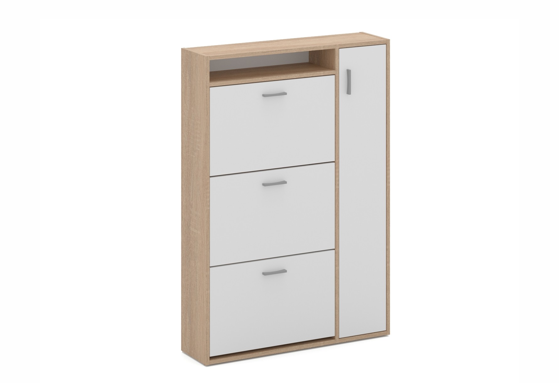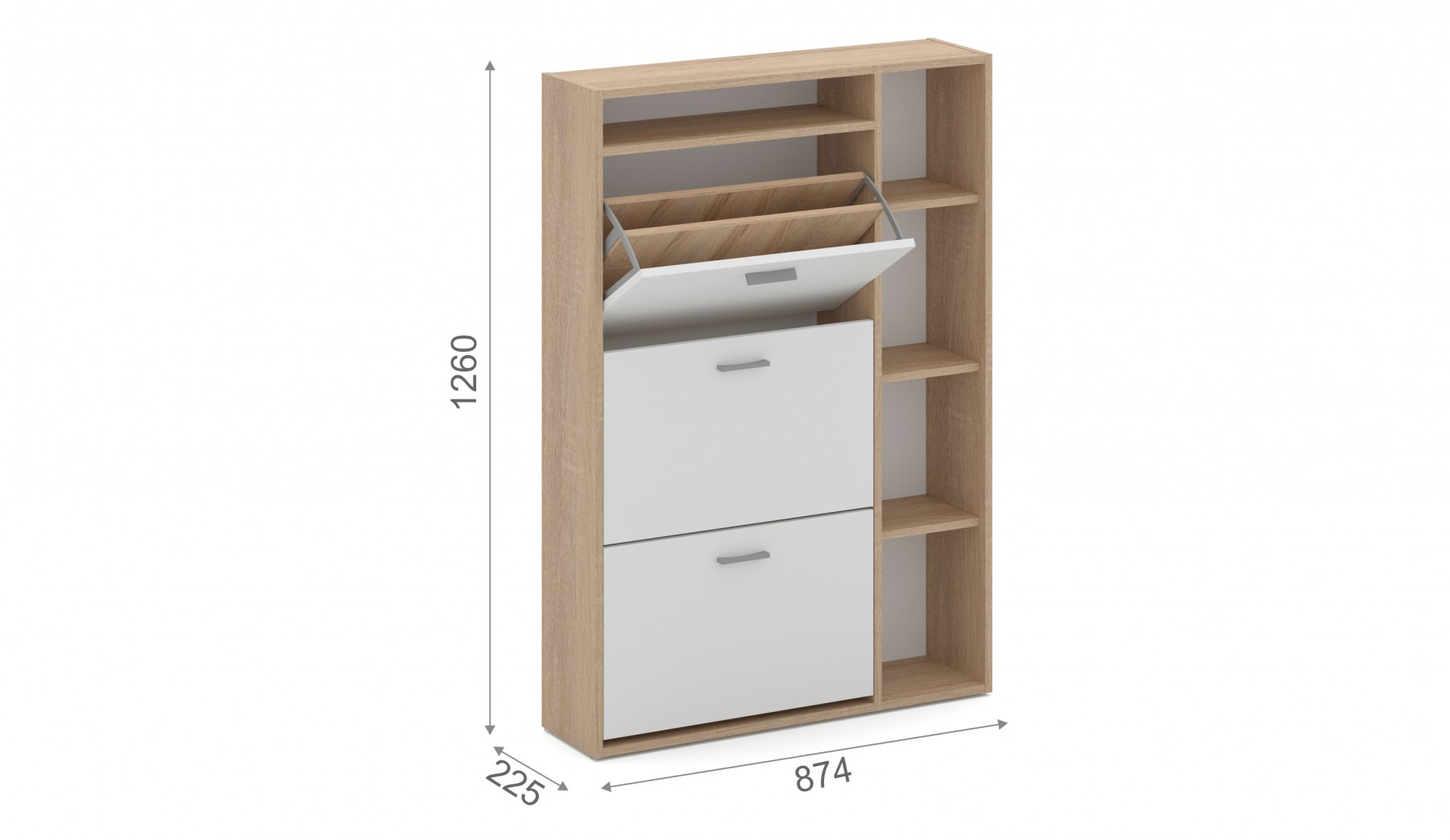 Тумба Толедо – это функциональное решение как для небольшой, так и для просторной прихожей. Правильно организовать хранение помогут вместительные отделения для обуви и полки для аксессуаров за распашной дверцей. Строгий и лаконичный дизайн, нейтральные цвета модели позволят использовать ее в классическом и современном интерьере.