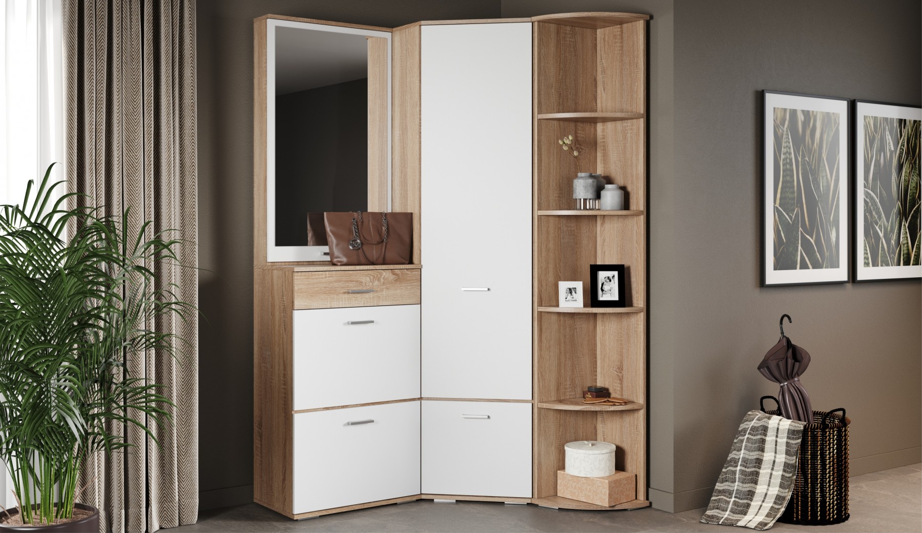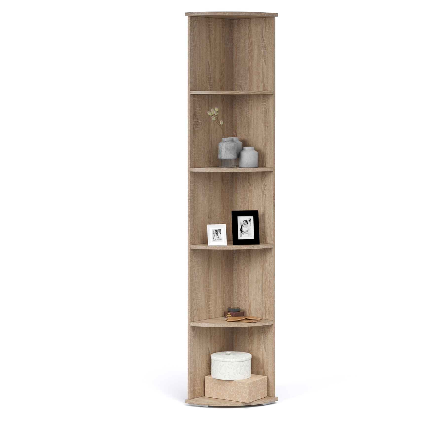Угловой стеллаж из ЛДСП универсального цвета – дополнение для шкафов системы Виола. Открытые полки позволят разместить книги, фотографии в открытом доступе, а также украсить помещение различными декоративными элементами. Нейтральные цвета корпуса и фасадов всегда будут актуальны, создают особый комфорт и уют. Идеально компонуется со всеми модулями системы Виола. Реальный цвет товара может незначительно отличаться от изображения на экране.
