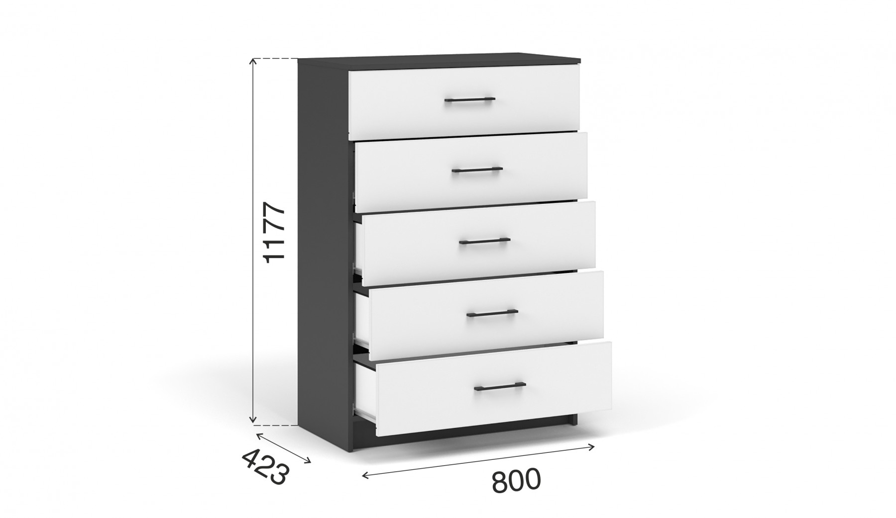 Практичный и надежный комод, изготовленный из прочного ЛДСП высокого качества, оборудован ящиками на роликовых направляющих для удобного хранения вещей по категориям. Нейтральные цвета декора визуально добавляют света и создают уют, а черные матовые ручки завершают композицию. Комод легко вписывается в готовые интерьеры благодаря своему универсальному дизайну и гармонично сочетается с любыми элементами из модульной системы Чикаго.