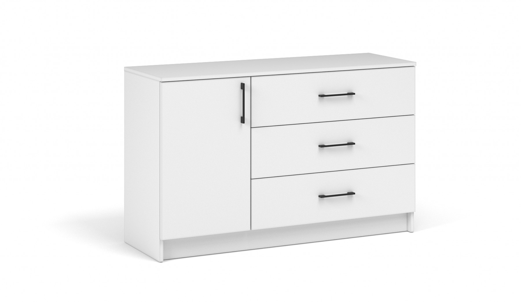 Практичный и надежный комод, изготовленный из прочного ЛДСП высокого качества, оборудован вместительными полками и выдвижными ящиками на роликовых направляющих для удобного хранения вещей по категориям. Нейтральные цвета декора визуально добавляют света и создают уют, а черные матовые ручки завершают композицию. Комод легко вписывается в готовые интерьеры благодаря своему универсальному дизайну и гармонично сочетается со всеми элементами модульной системы Чикаго.
