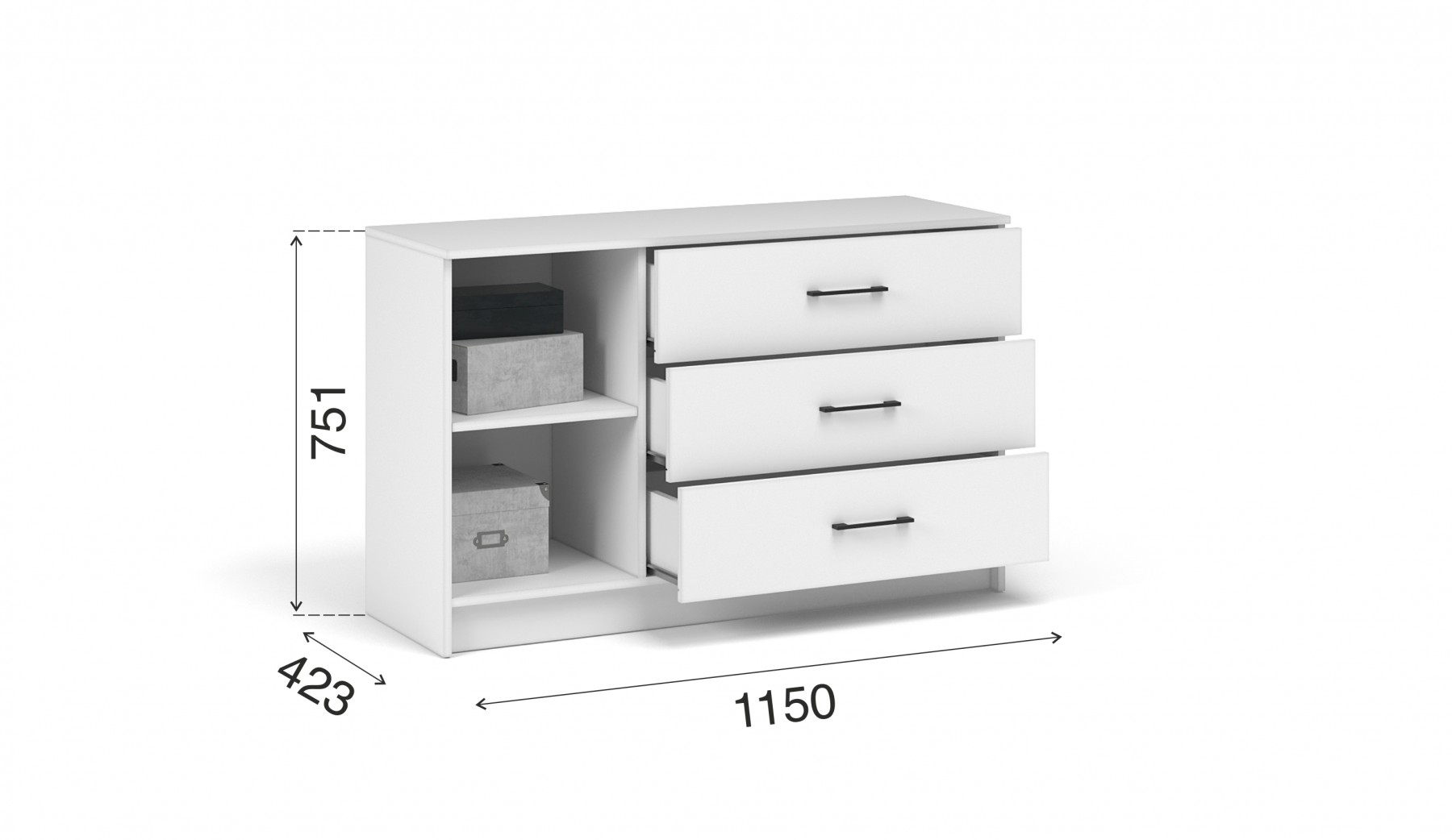 • Стильный комод с ящиками предоставляет удобный доступ к содержимому, сочетает современный дизайн и функциональность, подходит для любого интерьера