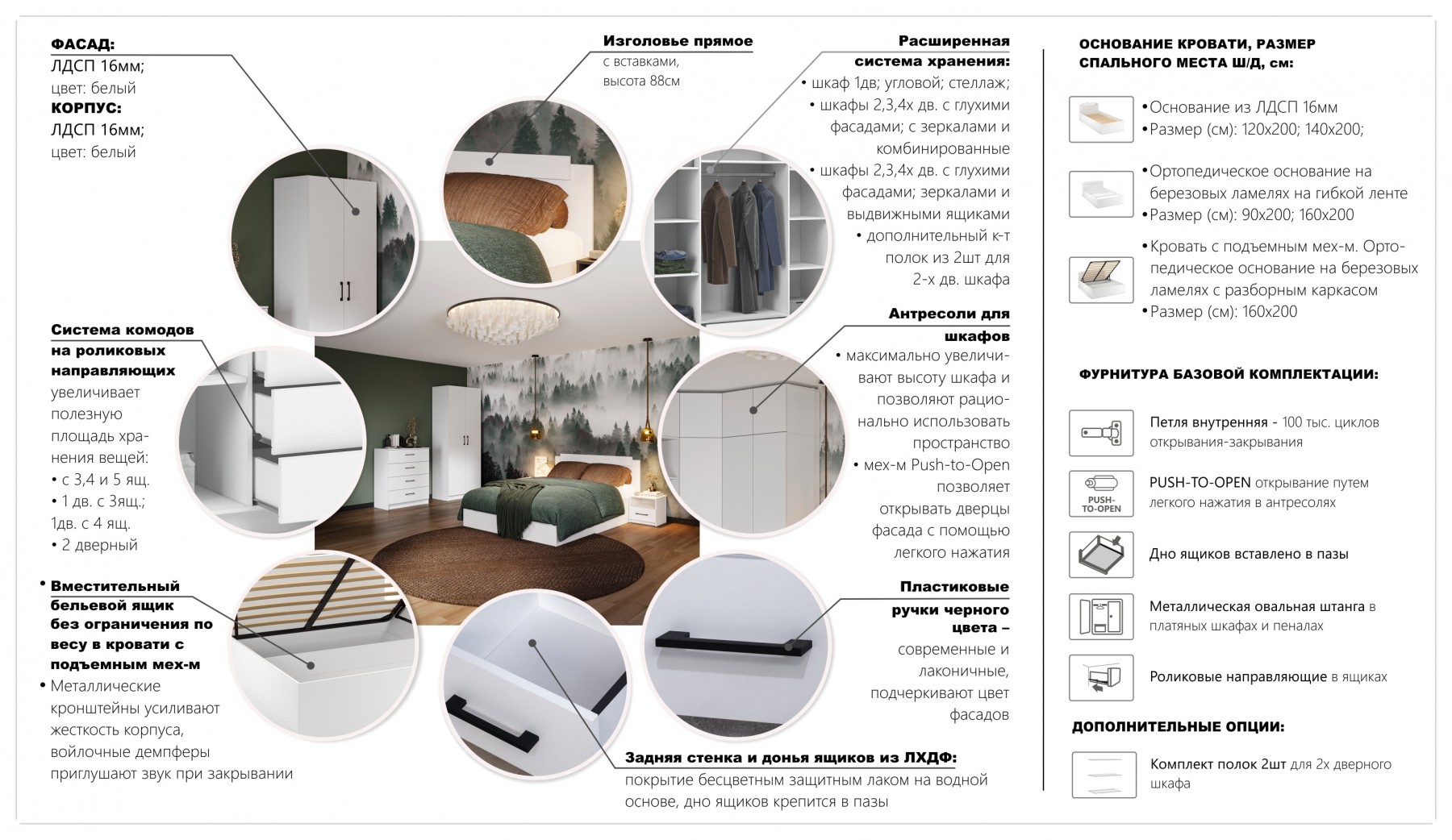 • Оснащены выдвижным ящиком и нишей, что делает их не только стильным, но и функциональным элементом спальни
