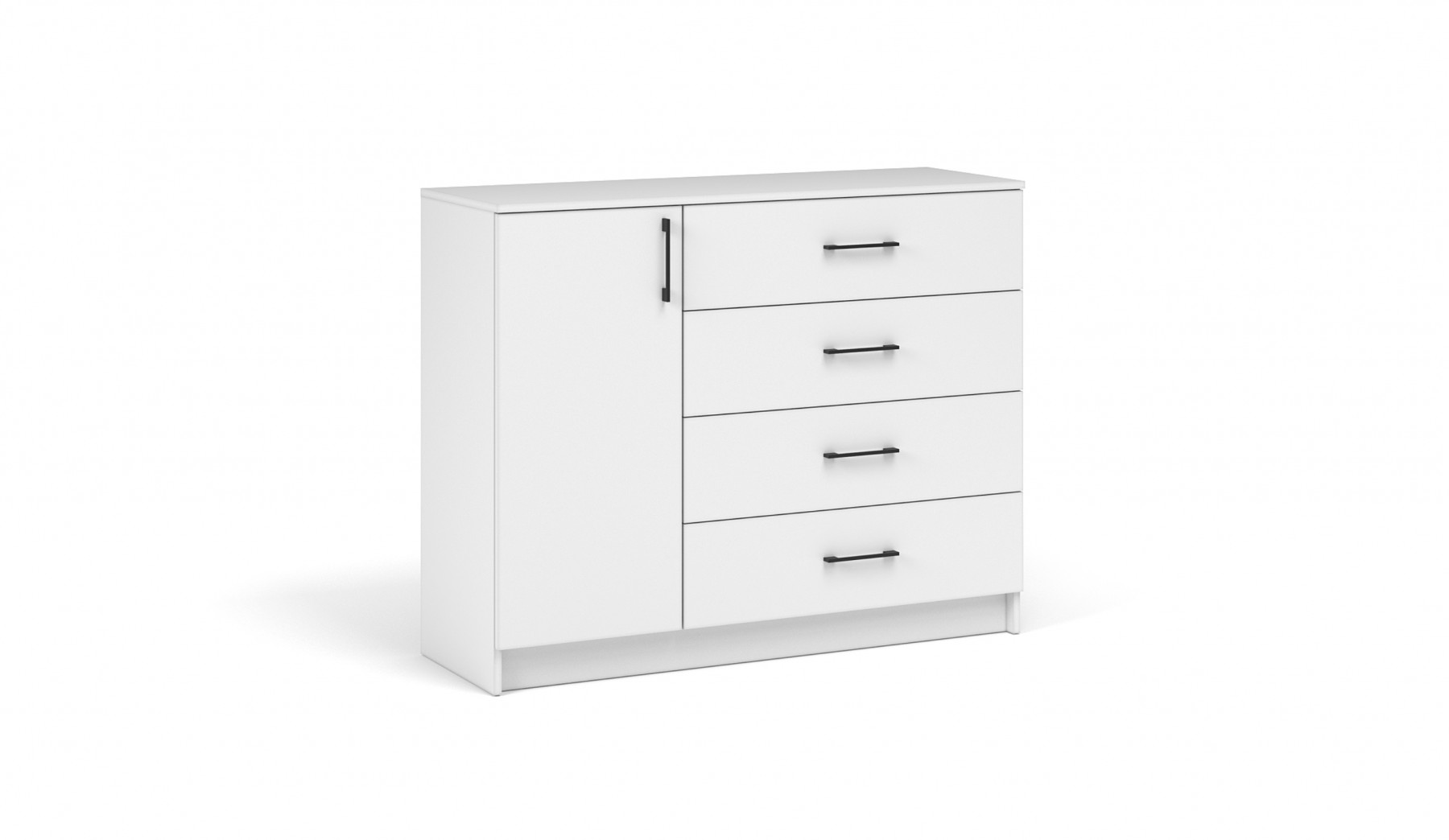 Практичный и надежный комод, изготовленный из прочного ЛДСП высокого качества, оборудован вместительными полками и выдвижными ящиками на роликовых направляющих для удобного хранения вещей по категориям. Нейтральные цвета декора визуально добавляют света и создают уют, а черные матовые ручки завершают композицию. Комод легко вписывается в готовые интерьеры благодаря своему универсальному дизайну и гармонично сочетается со всеми элементами модульной системы Чикаго.