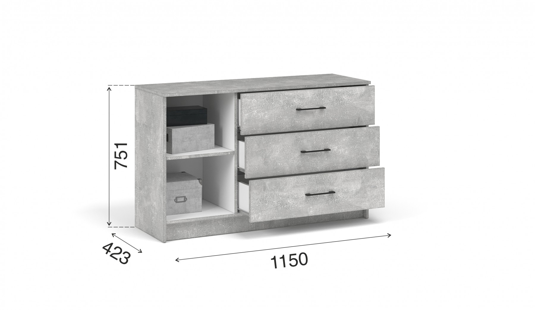 • Стильный комод с ящиками предоставляет удобный доступ к содержимому, сочетает современный дизайн и функциональность, подходит для любого интерьера