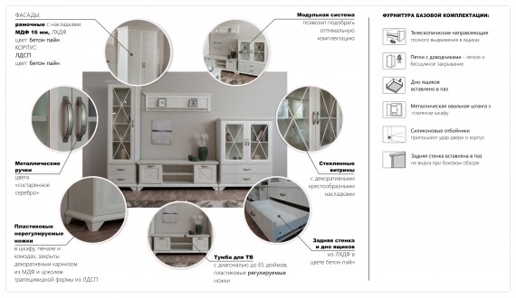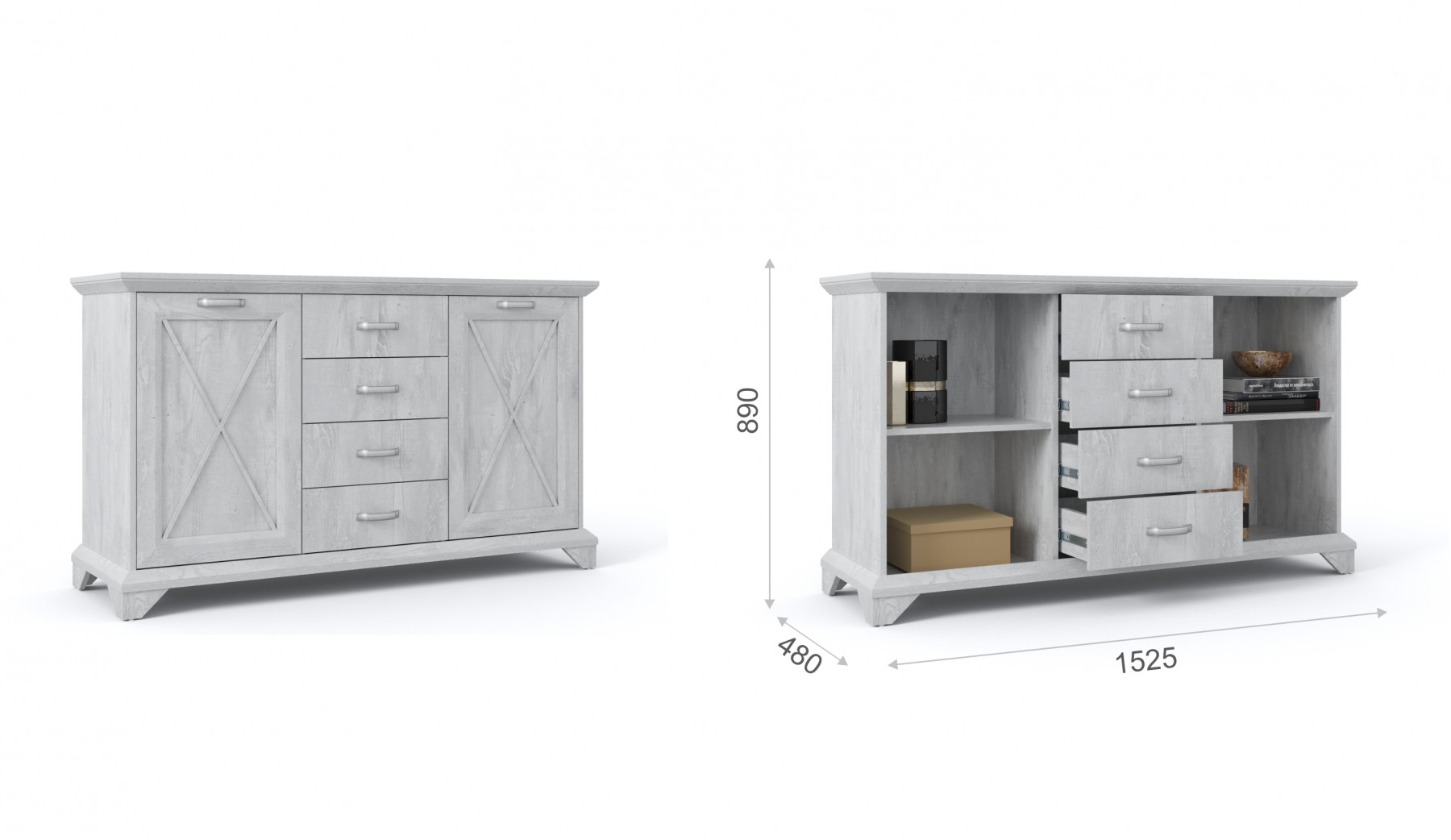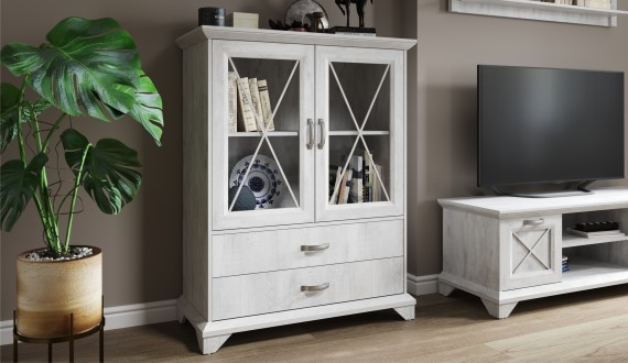 Вместительный комод Лорена в стиле неоклассика создает уютную атмосферу в интерьере гостиной или спальни. Белые фасады с фактурой и рисунком натурального дерева наполняют комнату светом, делают ее просторнее. Металлические ручки цвета состаренного серебра придают изысканность, а фигурные ножки и декоративный профиль крышки подчеркивают стилистику коллекции. В выдвижных ящиках на телескопических направляющих удобно хранить любые предметы одежды и личные вещи. Выполнен из экологичных материалов.