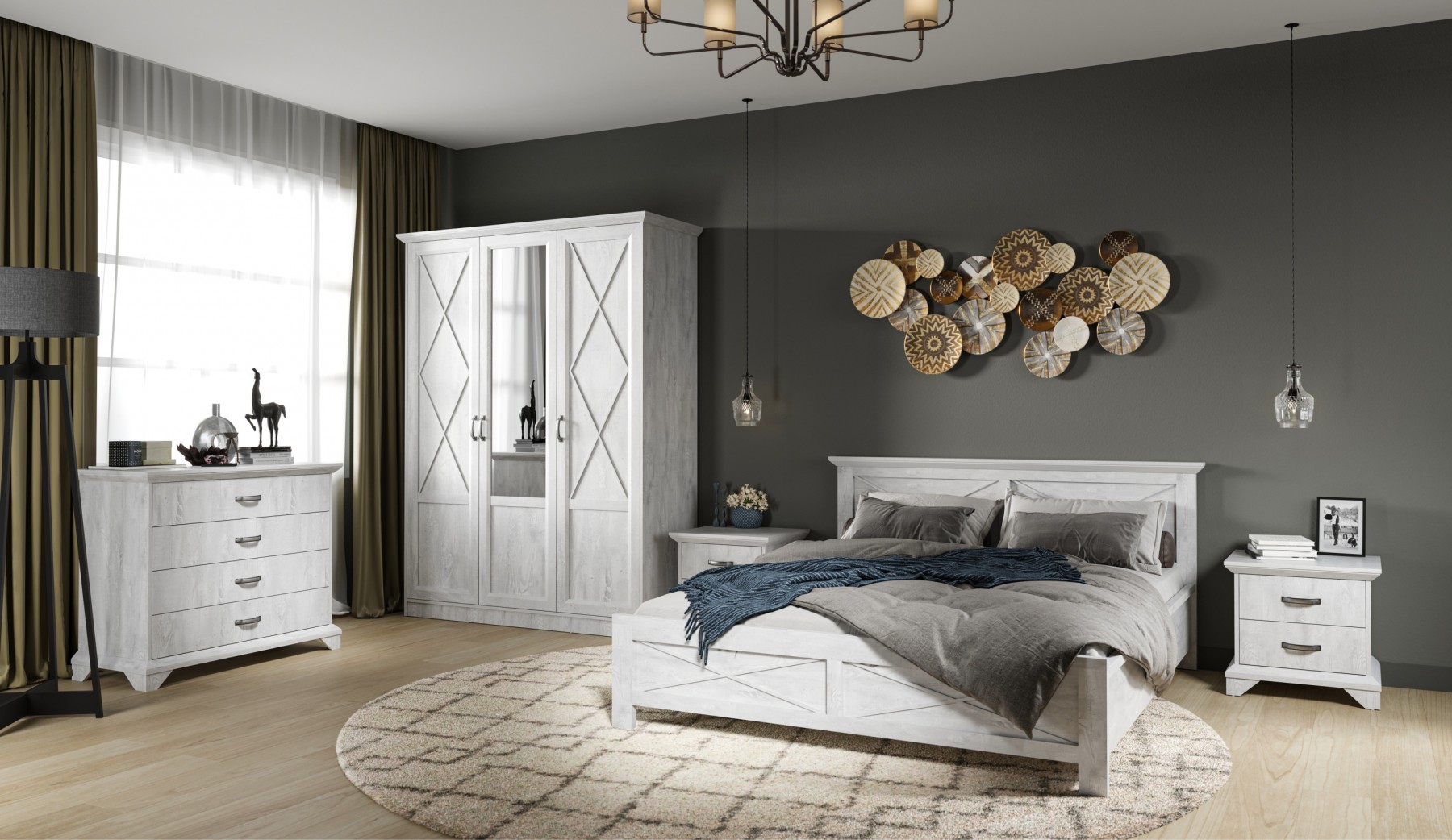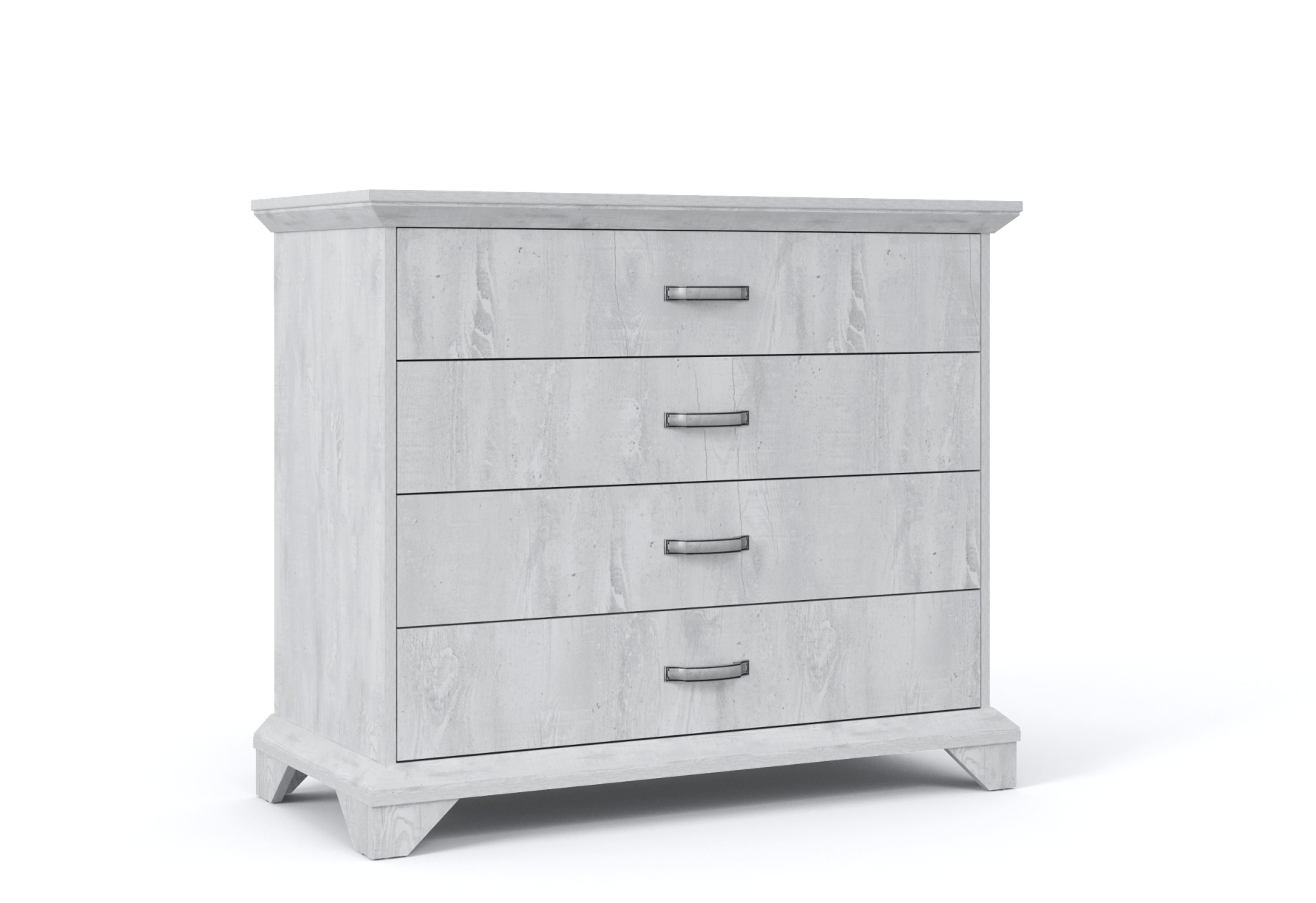 Вместительный комод Лорена в стиле неоклассика создает уютную атмосферу в интерьере гостиной или спальни. Белые фасады с фактурой и рисунком натурального дерева наполняют комнату светом, делают ее просторнее. Металлические ручки цвета состаренного серебра придают изысканность, а фигурные ножки и декоративный профиль крышки подчеркивают стилистику коллекции. В выдвижных ящиках на телескопических направляющих удобно хранить любые предметы одежды и личные вещи. Выполнен из экологичных материалов.