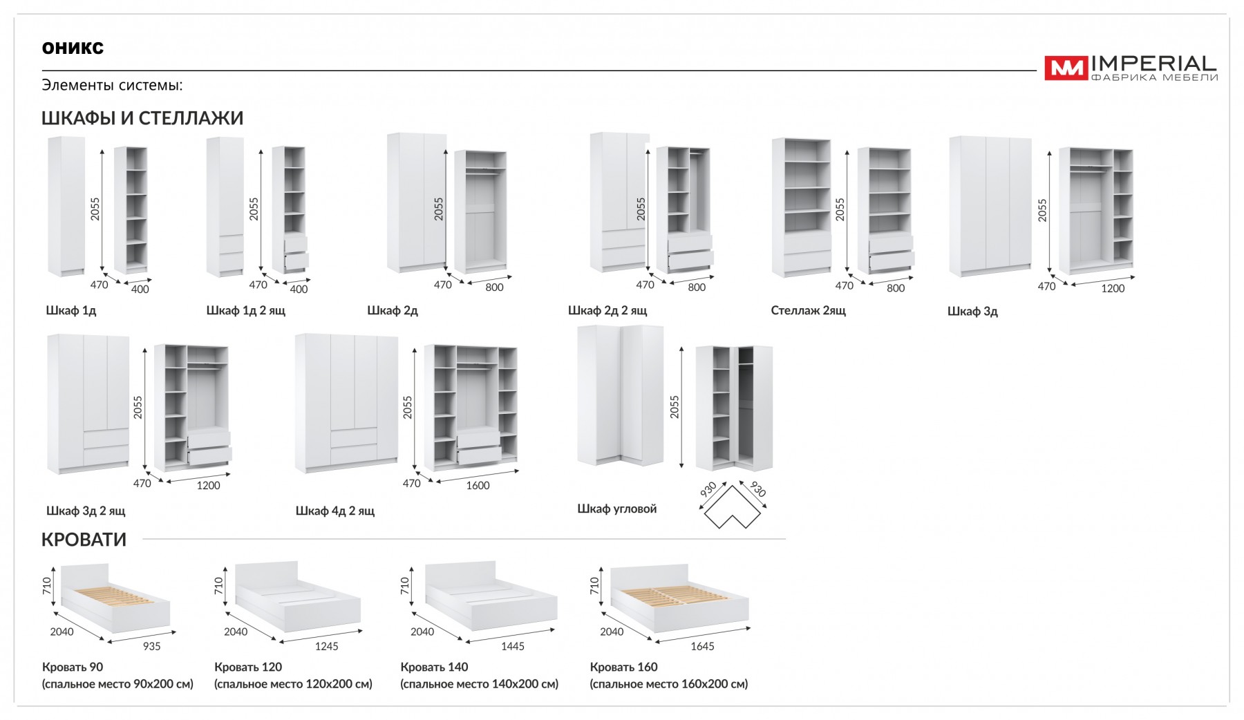 Шкафы для спальни идеально сочетаются с модулями детской, прихожей и гостиной серии «Оникс», позволяя легко создать единую систему хранения. Варианты исполнения: