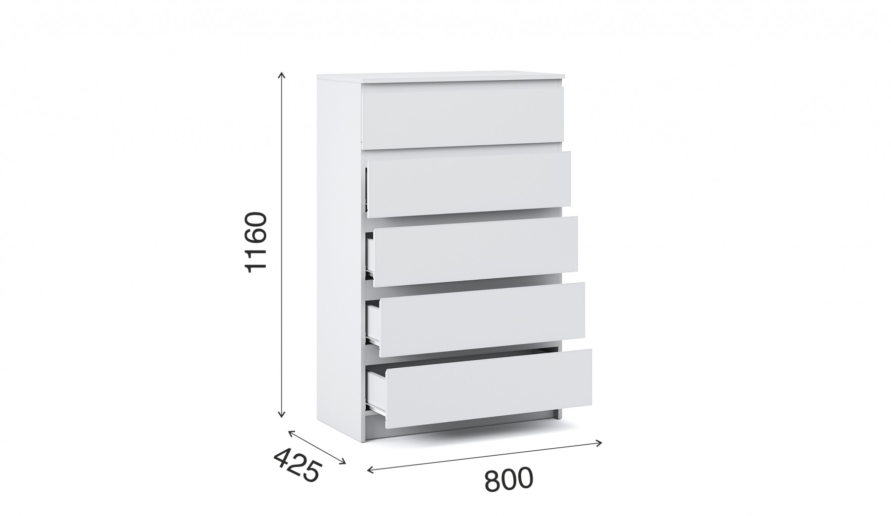 • Дно ящиков и задняя стенка изготовлены из ламинированного ХДФ, который выделяется высокой прочностью и экологической безопасностью, что гарантирует долговечность и надежность мебели