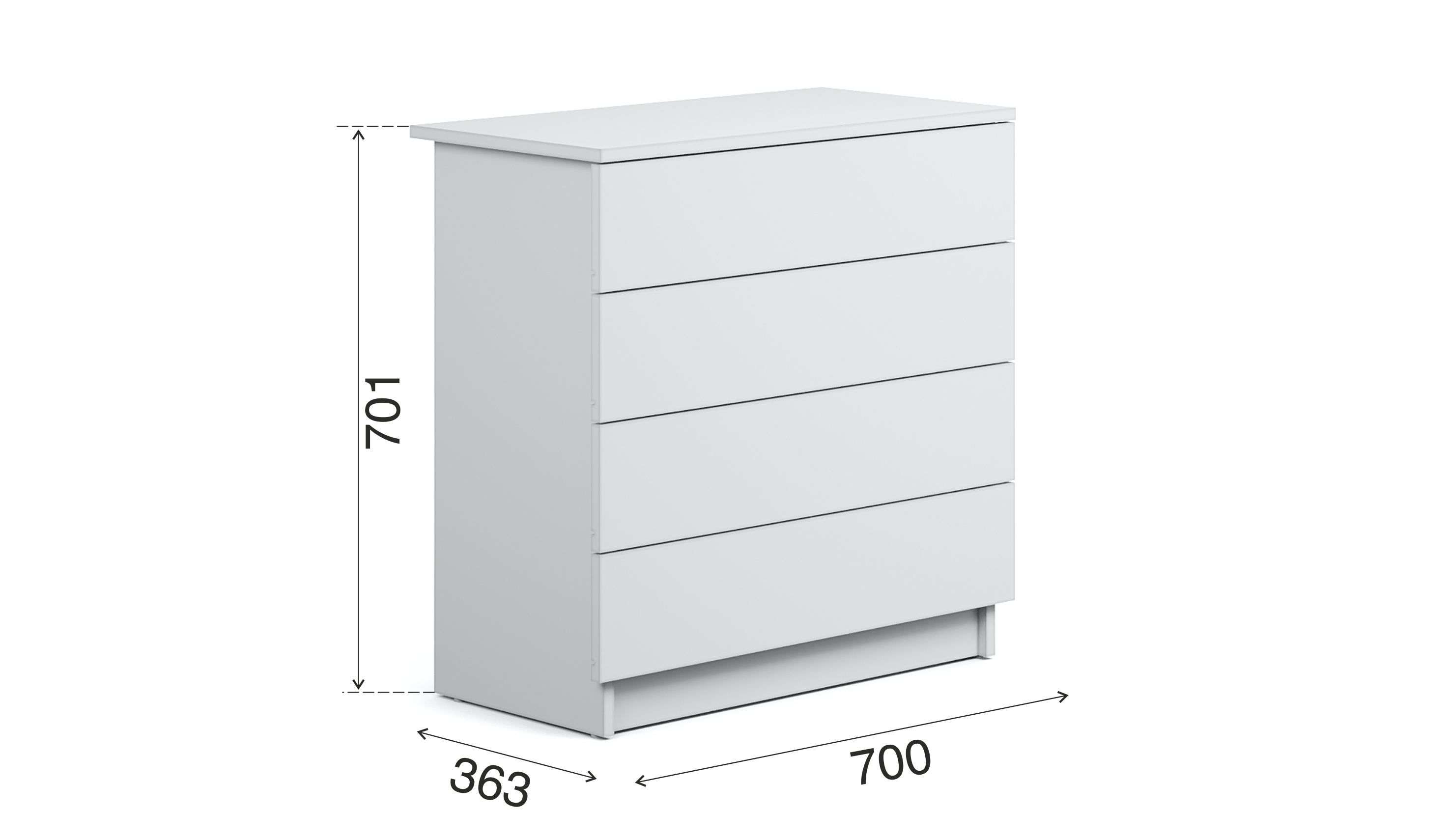 Современный комод в универсальном цветовом исполнении - это безупречное сочетание лаконичного дизайна и продуманной эргономики. Модуль выполнен из прочного ЛДСП, при этом особое внимание уделено долговечности: торцы топов обработаны плотной миллиметровой кромкой, которая надежно защищает края от механических повреждений и влаги. Четыре глубоких ящика оснащены телескопическими направляющими полного выдвижения, что позволяет без труда находить нужные предметы даже в самом дальнем углу. Задняя стенка фиксируется в паз, гарантируя стабильность геометрии шкафа. Дополнительным преимуществом является гибкая настройка верхней крышки - вы можете самостоятельно отрегулировать её свес, добиваясь безупречной посадки мебели в пространстве и создавая визуально законченную композицию в вашей спальне или гостиной.