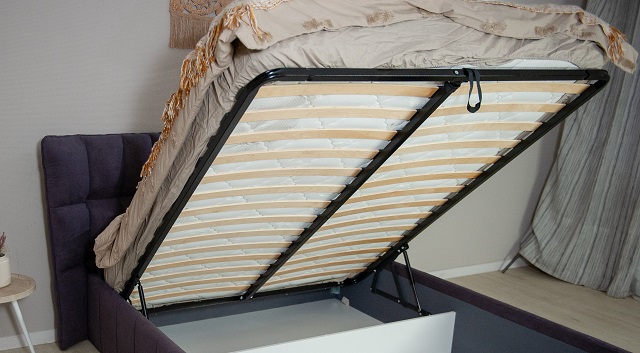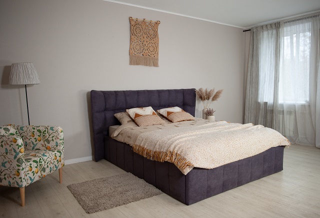 Роскошная кровать Габриэль с изысканным дизайнерским изголовьем превратит вашу спальню в настоящее произведение искусства. Изогнутое мягкое изголовье единой конструкции и ассиметричной строчкой добавляет модели элегантность и изысканность, в то время как углубленная стяжка с упругим наполнителем из холлофайбера придают дополнительный объем и усиливают ощущение уюта и комфорта. Надежный подъемный механизм на газлифтах обеспечивает легкий доступ к просторному бельевому ящику. Ортопедическое основание гарантирует комфортный отдых и здоровый сон.