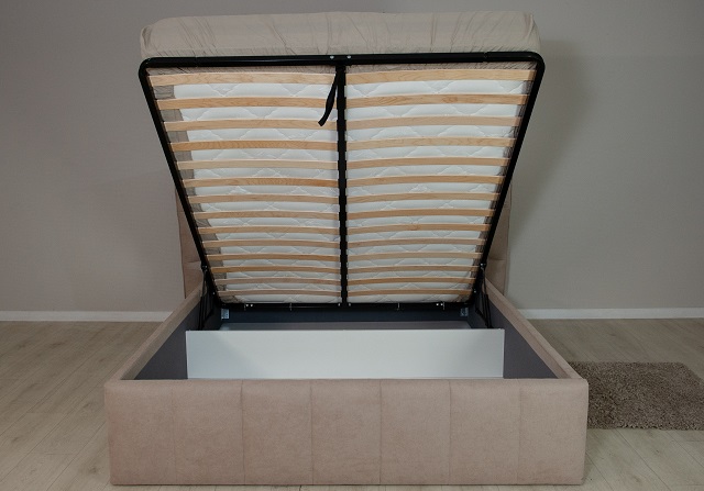 Роскошная кровать Габриэль с изысканным дизайнерским изголовьем превратит вашу спальню в настоящее произведение искусства. Изогнутое мягкое изголовье единой конструкции и ассиметричной строчкой добавляет модели элегантность и изысканность, в то время как углубленная стяжка с упругим наполнителем из холлофайбера придают дополнительный объем и усиливают ощущение уюта и комфорта. Надежный подъемный механизм на газлифтах обеспечивает легкий доступ к просторному бельевому ящику. Ортопедическое основание гарантирует комфортный отдых и здоровый сон.