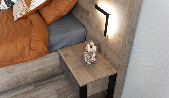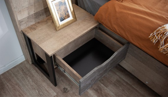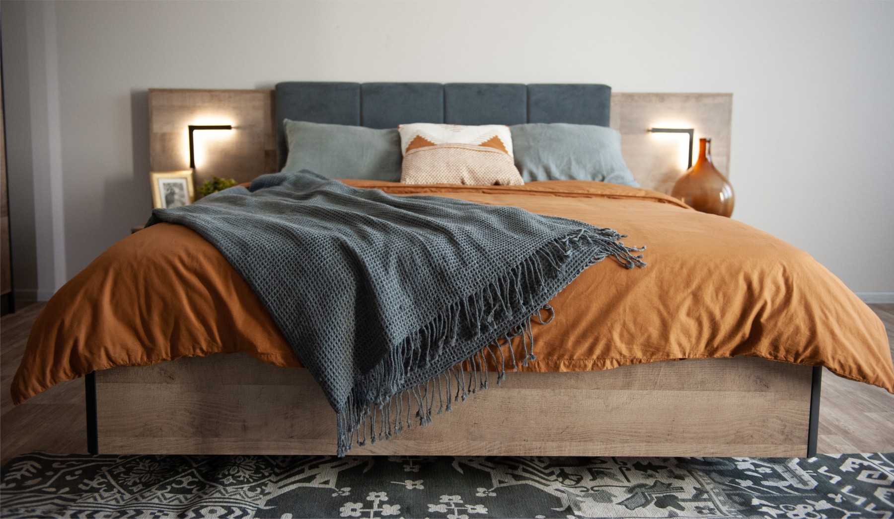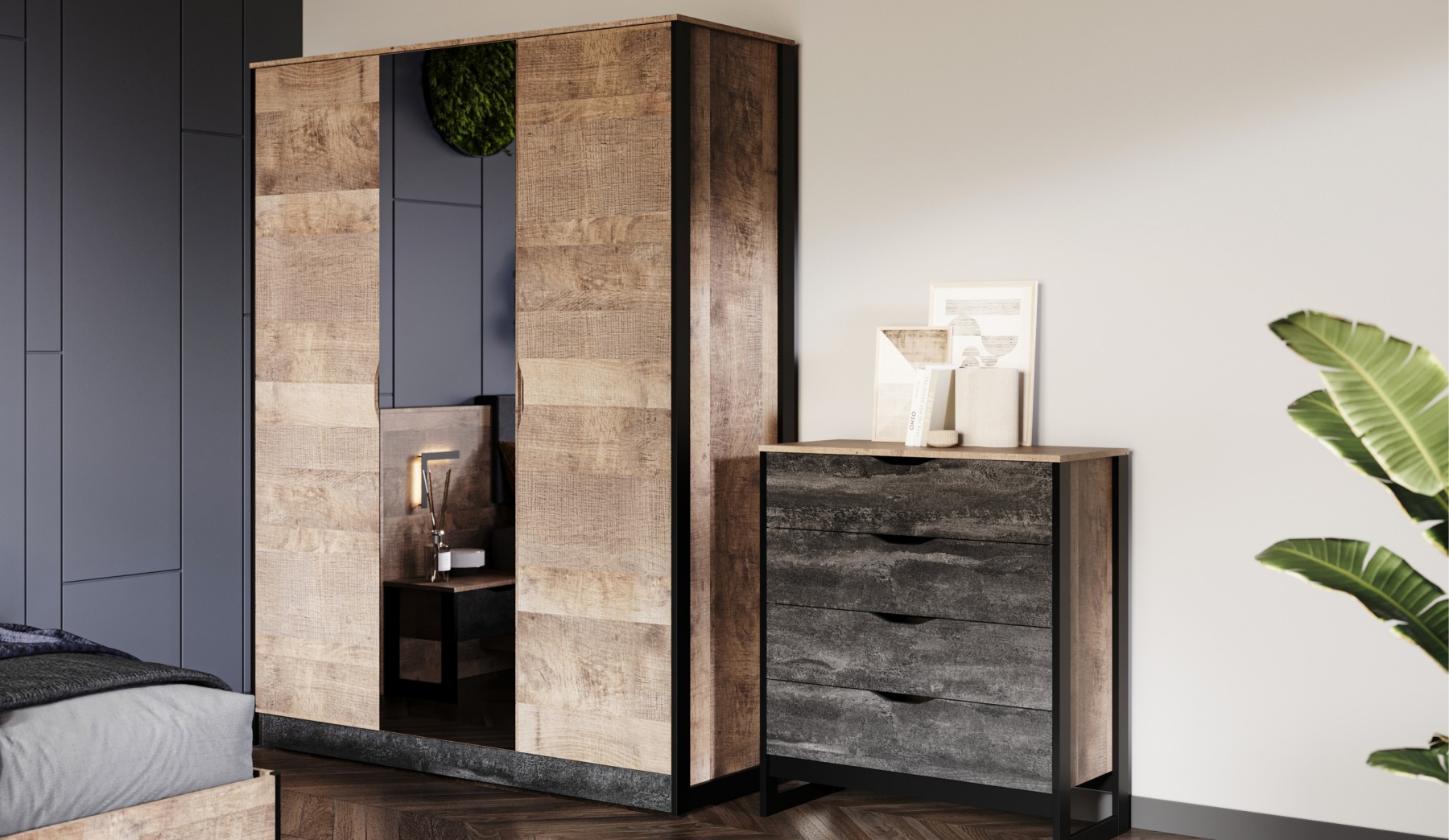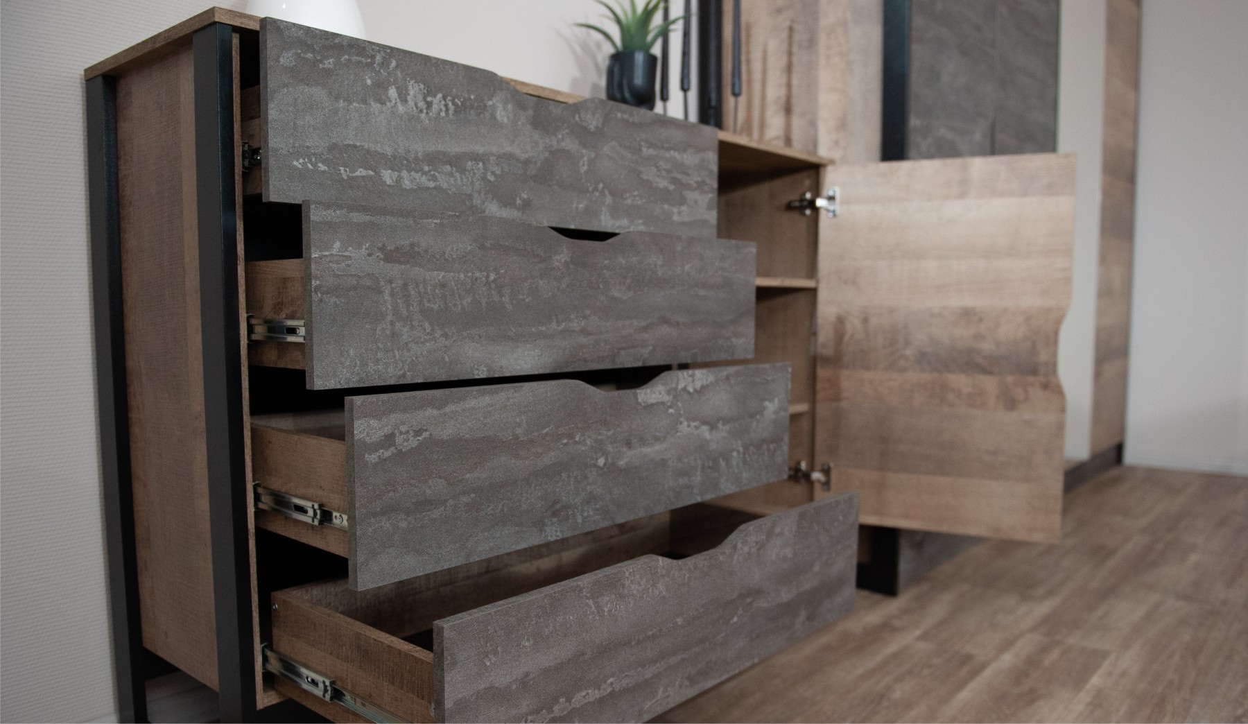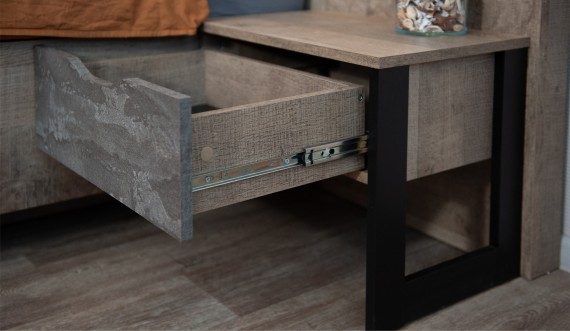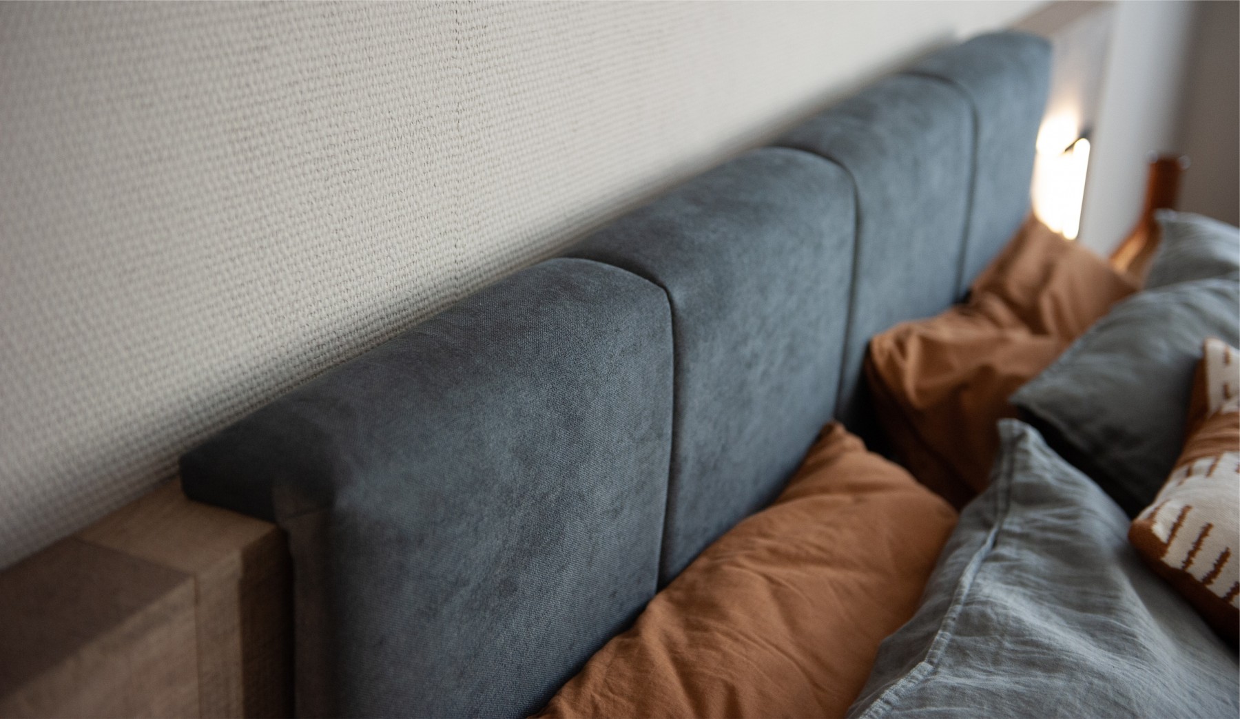 Спальня "Стокгольм" - это современная функциональная система, которая станет главным украшением лофтового интерьера. Особенность дизайна - это сочетание реалистичных по цвету и тактильности трендовых декоров, которые соответствуют последним городским тенденциям. "Дуб Гранж" привлекает имитацией вручную обработанного дерева с выразительной зернистой текстурой, характерной формой досок. Стильный серый цвет "Железного камня" с металлическими разводами и новая текстура состаренной штукатурки в сочетании с гладкостью металла вносят индустриальный колорит. Оригинальные ножки-опоры из контрастного профиля МДФ, расположенные по бокам модулей, имитируют металл и подчеркивают стиль коллекции. Кровать выполнена в простых и лаконичных формах, мягкая накладка с вертикальной прострочкой комфортно поддерживает спину во время отдыха. Скрытые опоры основания придают эффект парения, создают завораживающий футуристический интерьер.