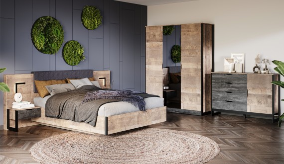Дуб гранж песочный/железный камень