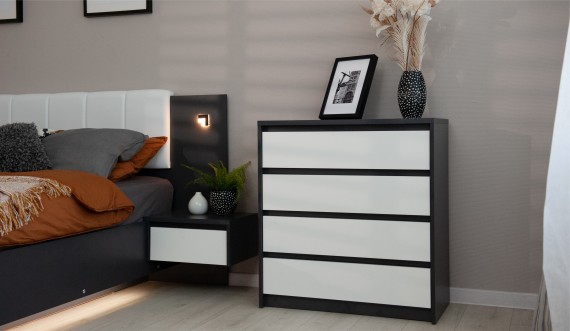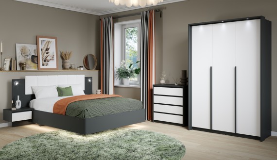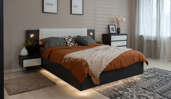 Современная прикроватная тумба Мишель с креплением к кровати создает визуальную целостность и «иллюзию парения». На столешнице поместятся небольшой светильник и необходимые аксессуары, а в ящике с направляющими полного выдвижения удобно хранить личные вещи. Идеально компонуются со всеми модулями системы Мишель.