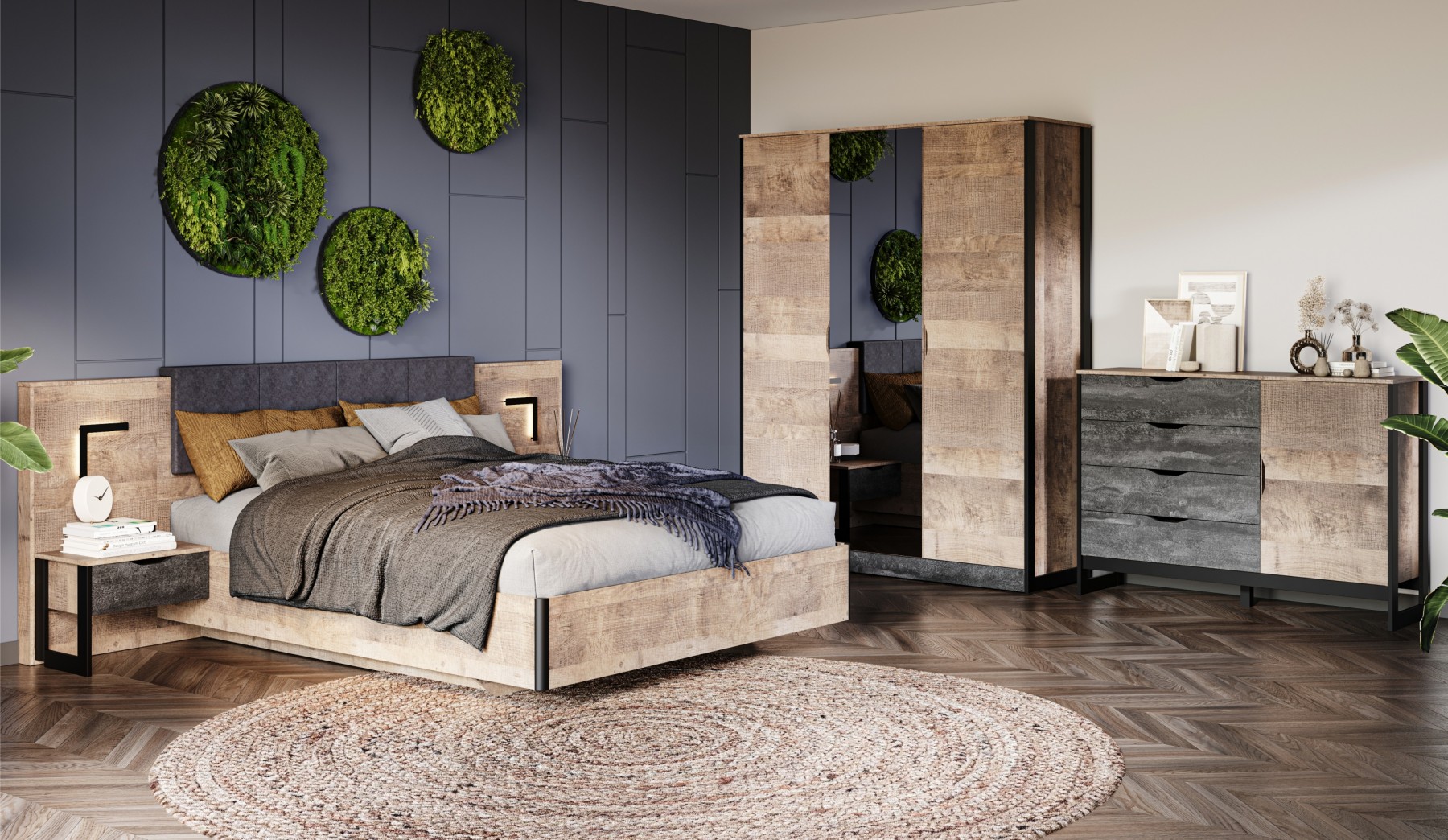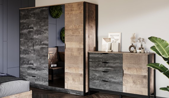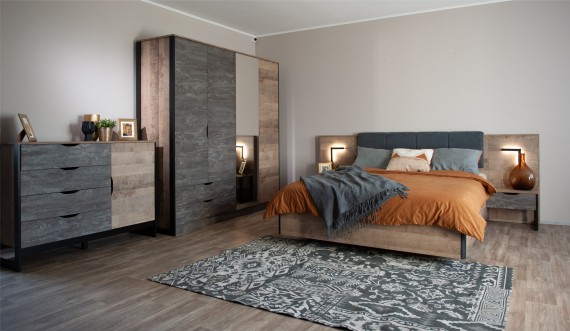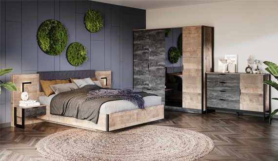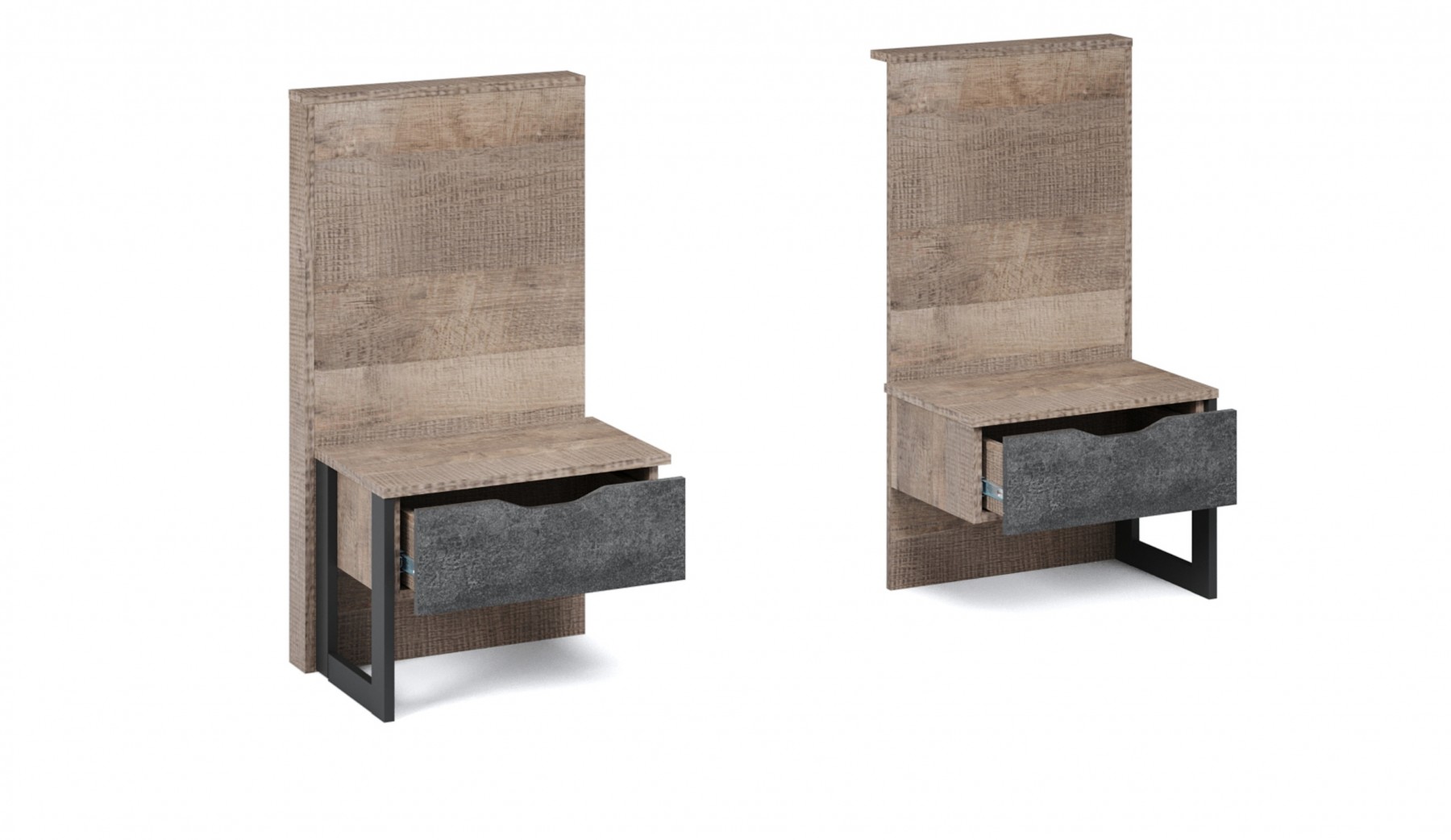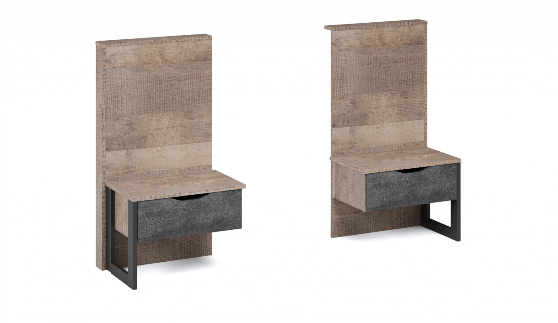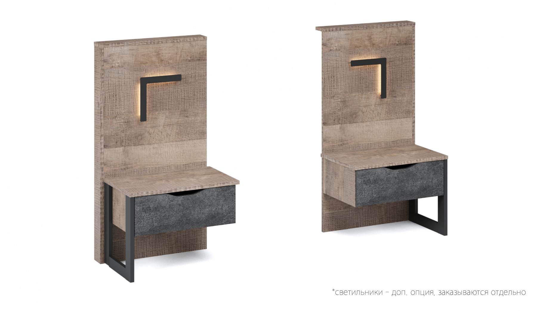 Прикроватная тумба Стокгольм отличное дополнение к спальне в стиле лофт, сканди, экоминимализм. Особенность дизайна - это сочетание реалистичных по цвету и тактильности трендовых декоров, которые соответствуют последним городским тенденциям. "Дуб Гранж" привлекает имитацией вручную обработанного дерева и выразительной зернистой текстурой, характерной формой досок. Стильный серый цвет "Железного камня" с металлическими разводами и новая текстура состаренной штукатурки в сочетании с гладкостью металла вносят индустриальный колорит. Оригинальные ножки-опоры из МДФ контрастного цвета придают изюминку интерьеру. Тумба крепится к кровати - это создает визуальную целостность и иллюзию парения. Выдвижной ящик на телескопических направляющих поместит в себя все вещи, которые важно иметь под рукой - светильник, телефон, книга. Отсутствие лицевой фурнитуры подчеркивает минимализм и геометрию модуля. Идеально компонуется со всеми модулями системы Стокгольм.