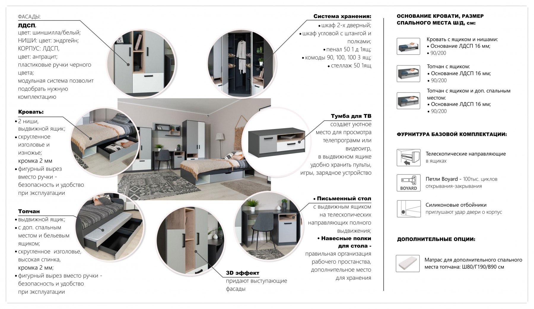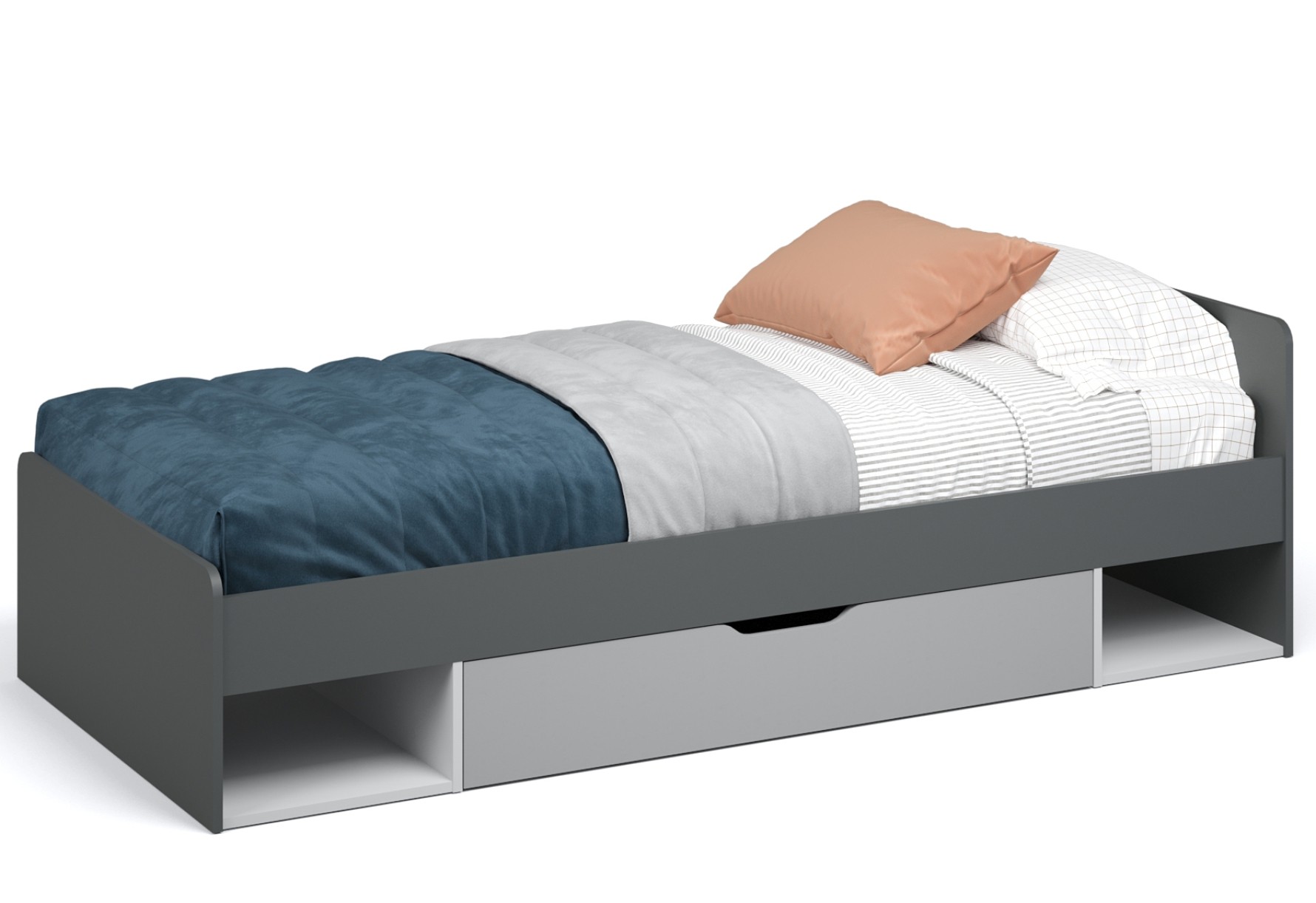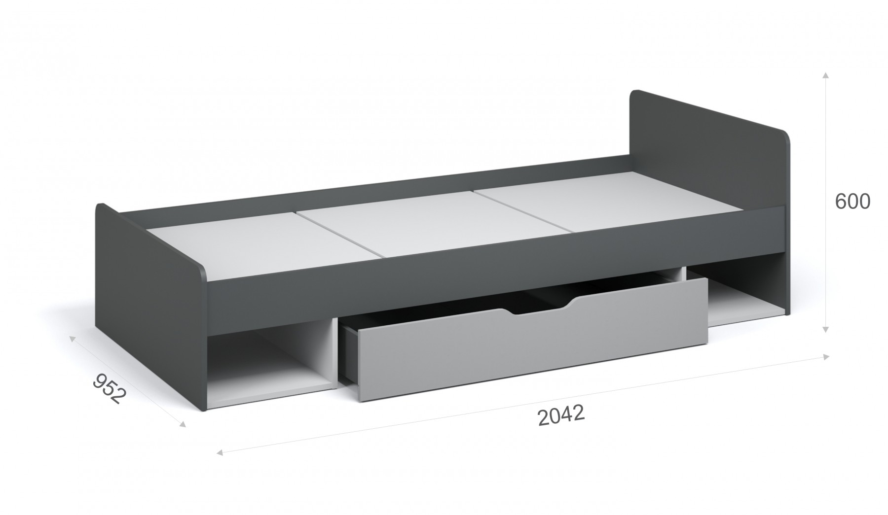 Кровать "Квадро" - подходящее решение для тех, кто ценит комфорт и безопасность. Универсальный размер позволяет гармонично вписаться в любой интерьер, а нейтральная цветовая гамма делает её подходящей для разных стилей. Благодаря скругленным углам с кромкой 2 мм, кровать выглядит аккуратно и безопасно, особенно если в доме есть маленькие дети. Фигурные выемки вместо ручек добавляют ей элегантности и оригинальности. Вместительный ящик на роликах обеспечивает дополнительное пространство для хранения вещей, а открытые ниши позволяют разместить книги или декоративные элементы. Настил из ЛДСП класса эмиссии Е1 гарантирует экологическую чистоту и долговечность материала.