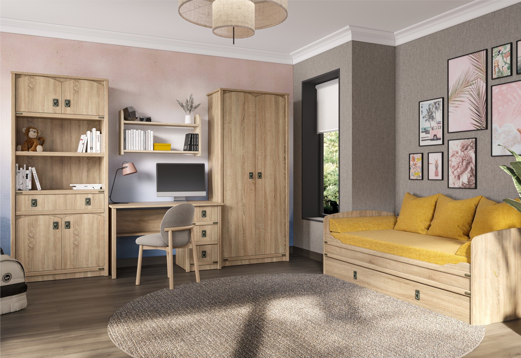 Детская Валенсия - отличное решение для детей любой возрастной категории. Все модули этой системы максимально функциональны и вместительны. Разнообразие модулей позволит Вам подобрать оптимальный комплект. Декоративные элементы создают яркий морской стиль этого комплекта. В этой модели предлагается более компактное решение двуспальной кровати, чем многоярусная кровать, съедающая слишком много пространства. При этом есть возможность превратить кровать в диван. Жемчужина модели – сундук. При относительно демократичной цене в комплекте использованы высококачественные материалы.