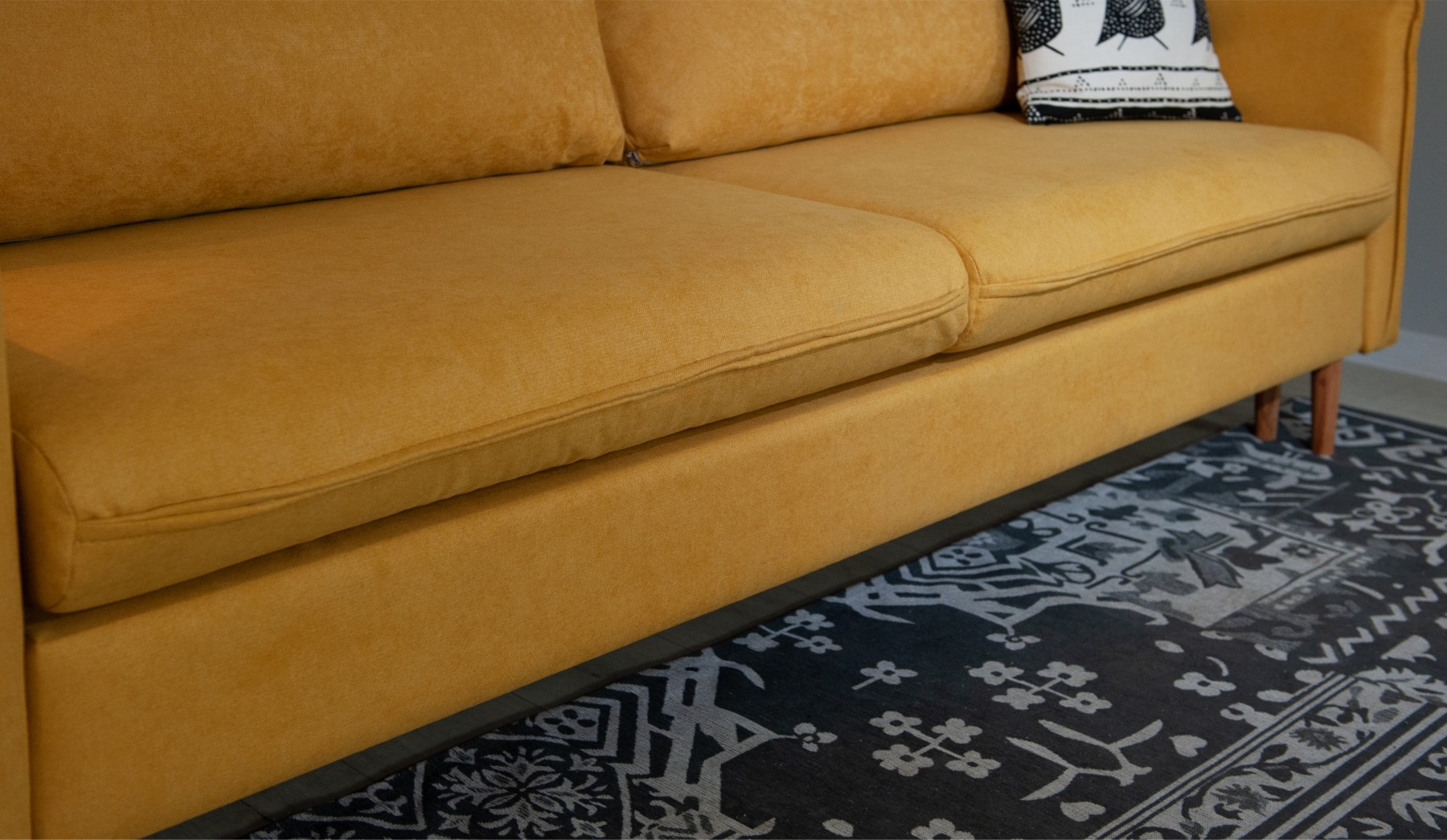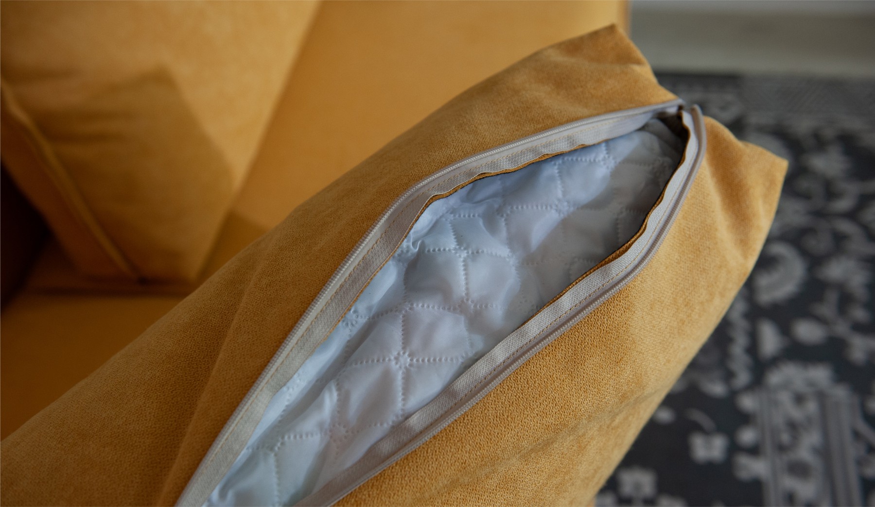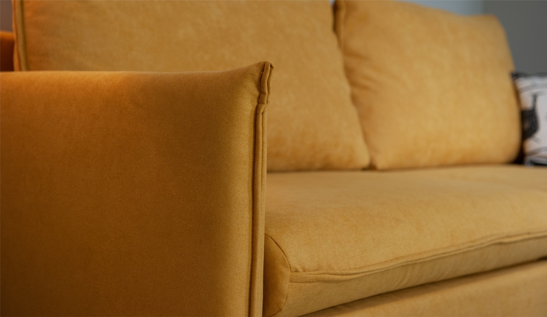 Задняя спинка дивана полностью обтянута тканью основы — модель можно размещать не только у стены, но и в центре помещения для разделения зон
