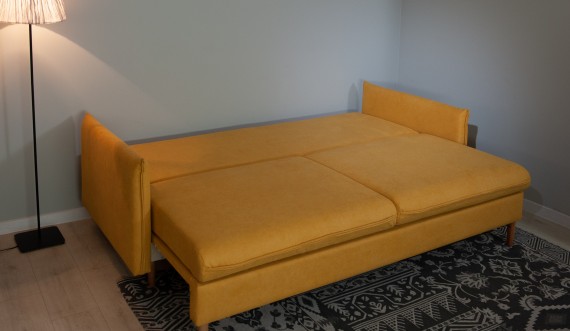 Бруно - это диван в скандинавском стиле с эргономичным дизайном. Легкость конструкции обеспечивают деревянные ножки из цельного дерева, а экономия пространства достигается за счет узких подлокотников. Велюровая обивка в современных тонах с декоративным кантом по периметру дивана и на подушках добавляет изысканности. Механизм "пантограф" позволяет легко трансформировать диван в удобное спальное место. Независимый пружинный блок в основании дивана гарантирует качественный отдых. Вместительный ящик для белья под сиденьем предоставляет удобное решение для хранения постельных принадлежностей.