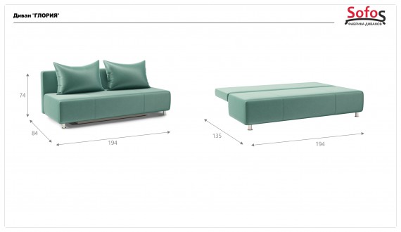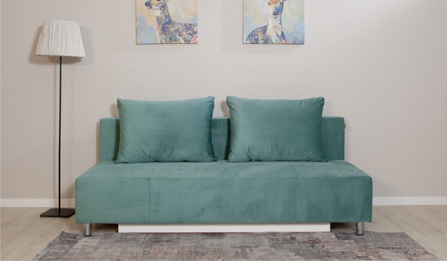 • Небольшие размеры, эргономичность дивана и отсутствие подлокотников являются преимуществом для помещений маленькой площади