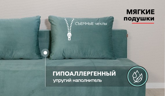 Съемные подушки-валики вместо подлокотников экономят пространство