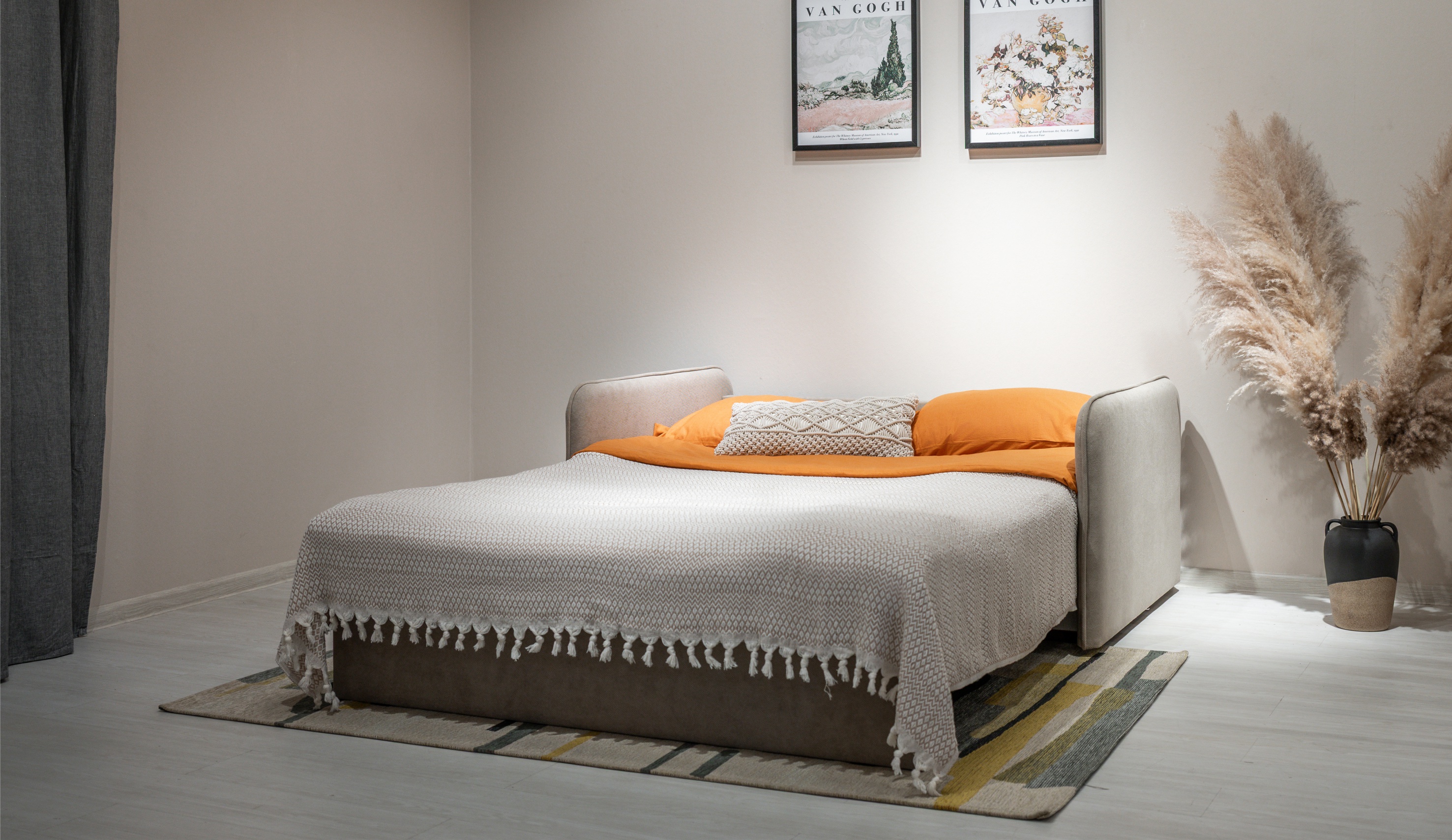 • Материал отличается высокой износостойкостью (50 000 циклов по Мартиндейлу), плотностью 300 г/кв. м и простотой в уходе — не требует специальных средств и усилий для очистки