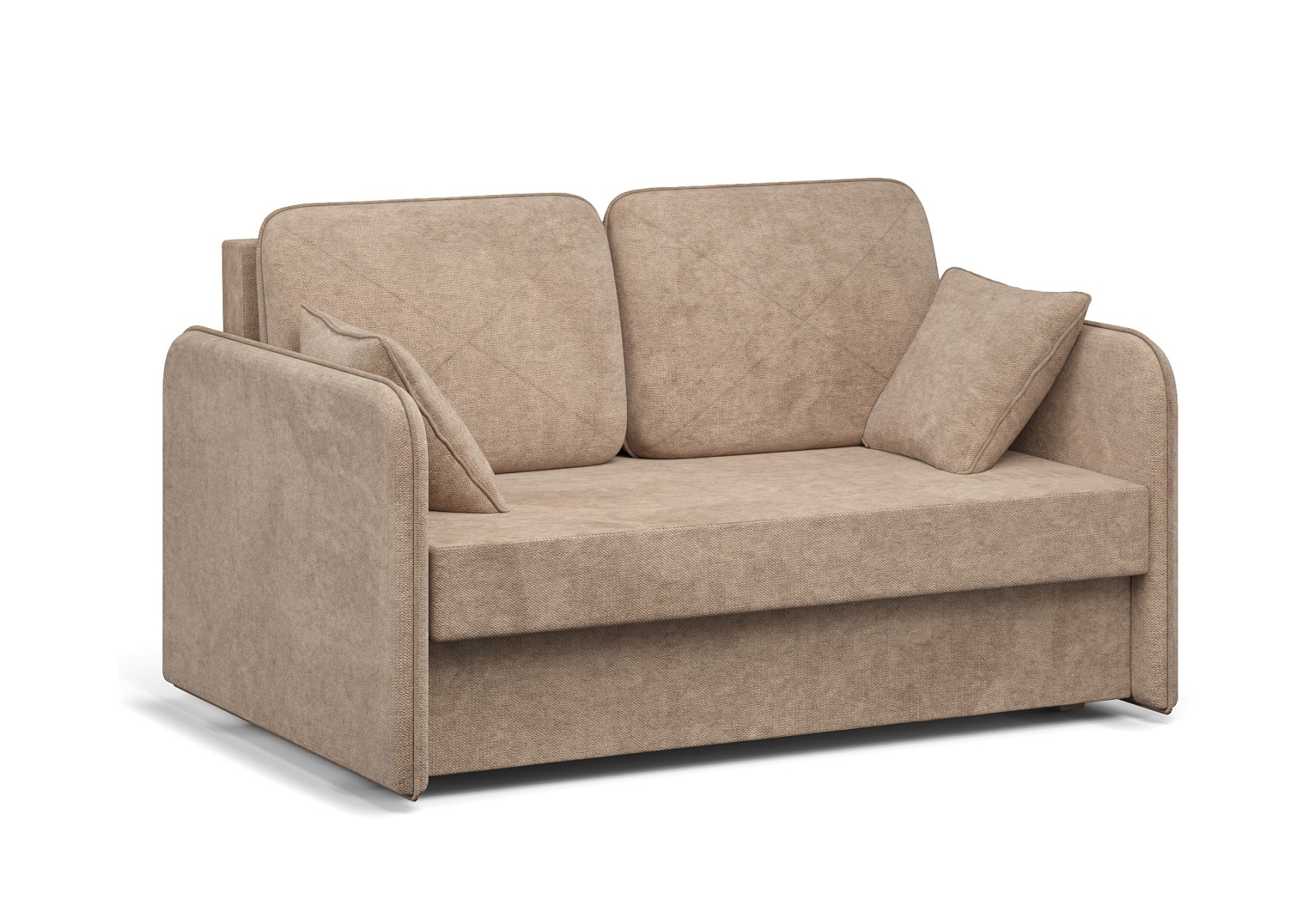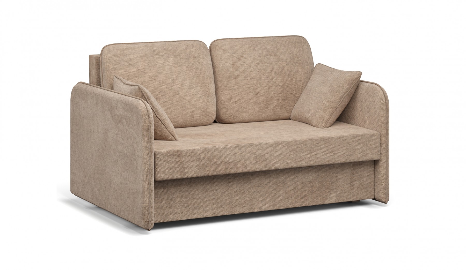 Небольшой и функциональный диван Клео-мини отлично подойдёт для ограниченного пространства. Две большие подушки с декоративной строчкой придают модели завершённый вид. Кант, проходящий по периметру подлокотников и подушек, подчёркивает форму. Механизм "трёхсекционная книжка" прост в использовании, а бельевой короб из ЛДСП позволяет экономить место.