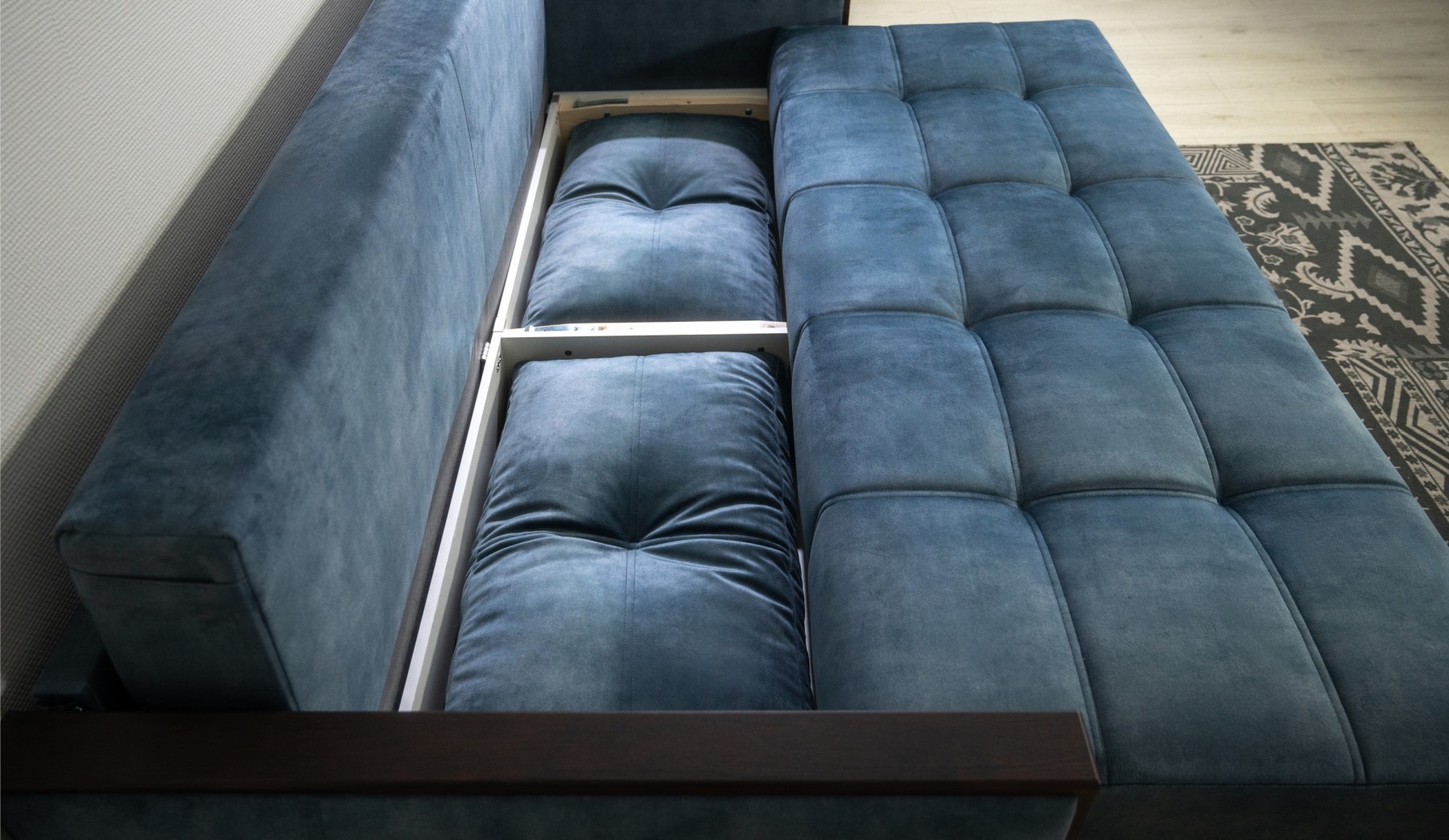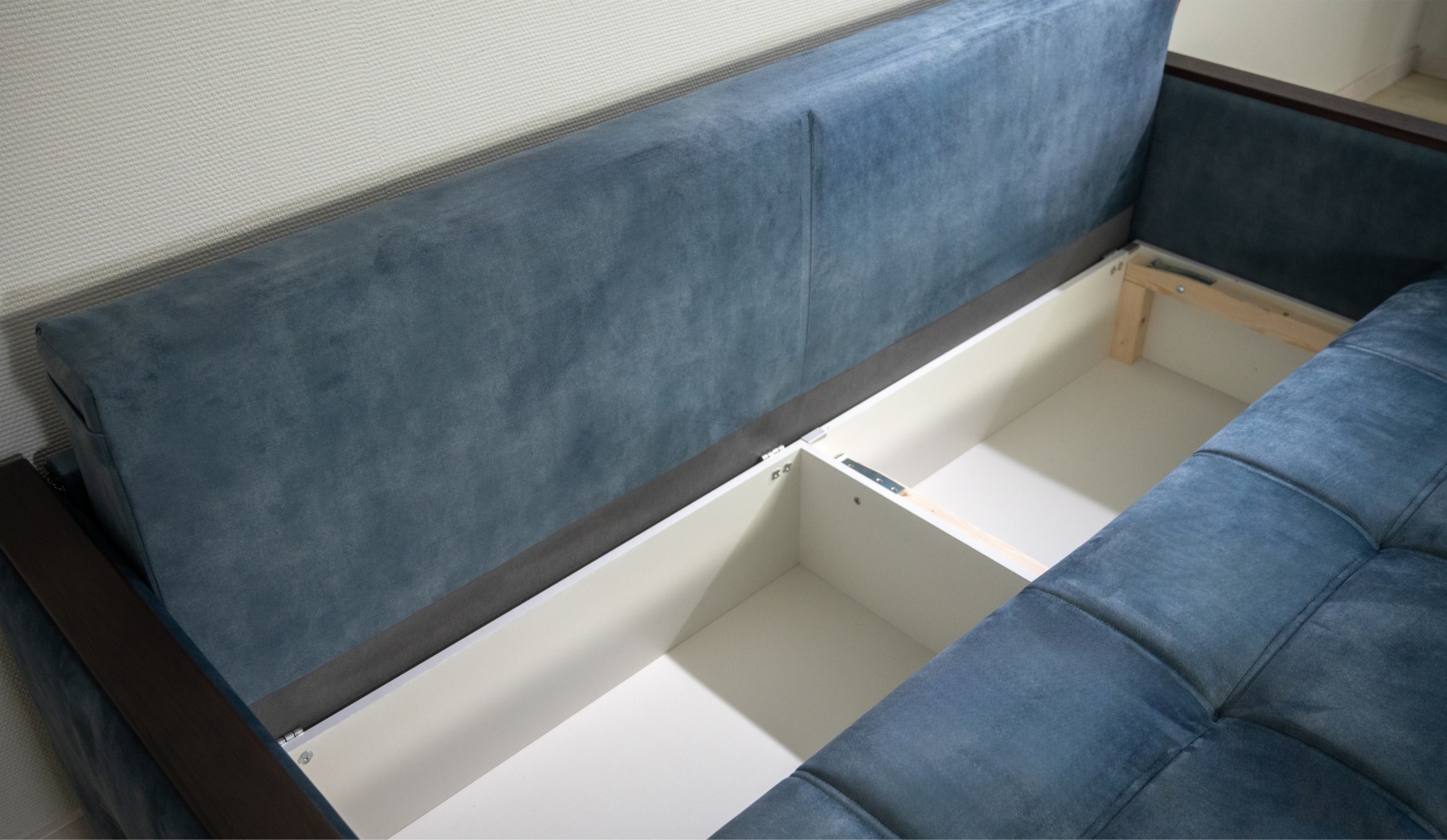 • Просторный внутренний объем ящика предоставляет достаточно места для постельного белья и других вещей, включая крупные подушки от дивана
