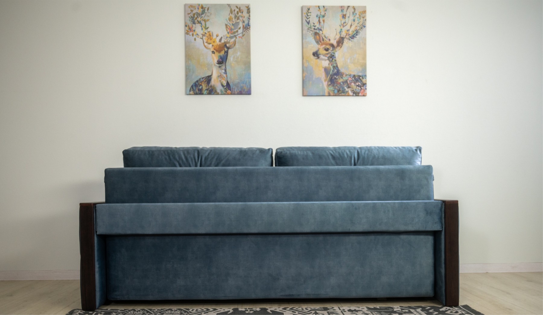 • Обратная сторона дивана выполнена из той же ткани, что и основная обивка, что придает ему аккуратный и привлекательный вид