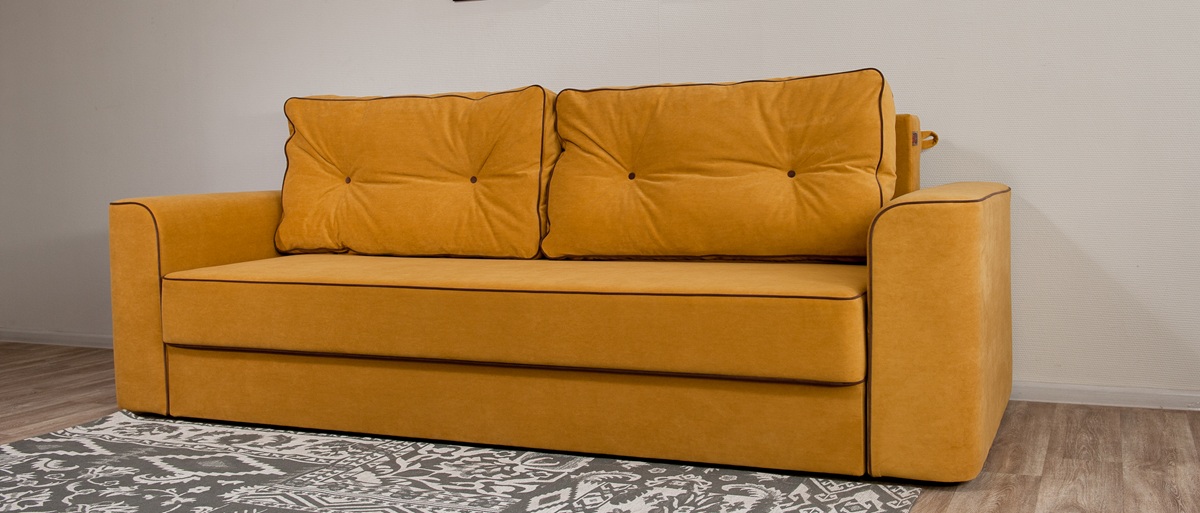 • Контрастный кант по периметру и аккуратные пуговицы на подушках подчеркивают индивидуальность модели