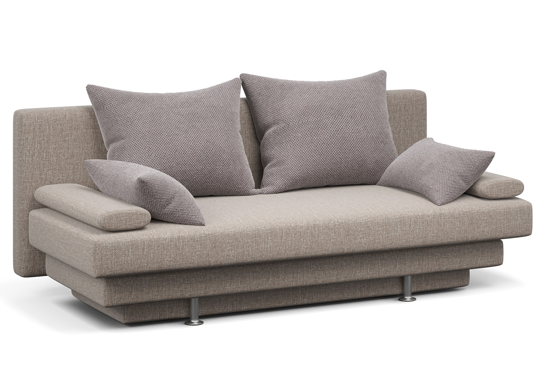 Вика" - это компактный диван со съемными подлокотниками, оснащенный независимым пружинным блоком. Приспинные подушки позволяют регулировать удобство посадки. С помощью механизма "еврокнижка" он образует просторное и ровное спальное место, удобно спать как на кровати с ортопедическим матрасом. Под посадочной частью дивана встроенный бельевой ящик без ограничения по весу для хранения.