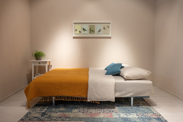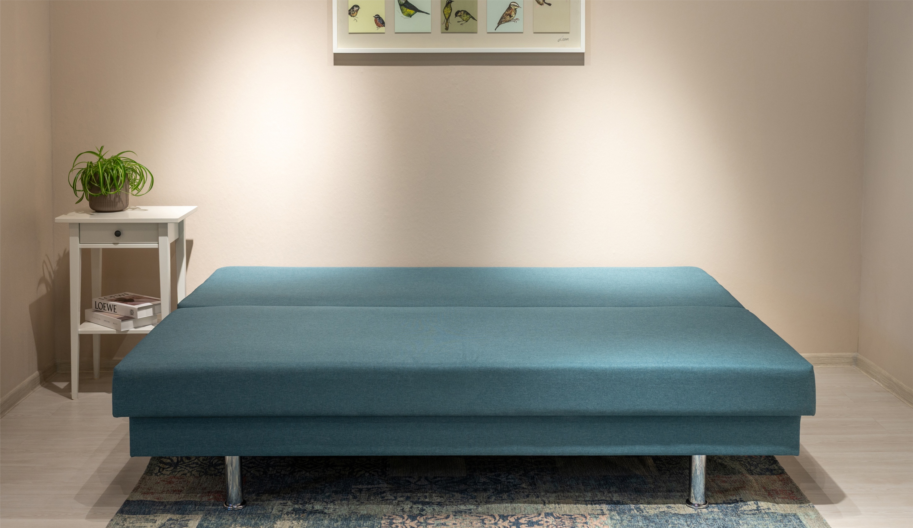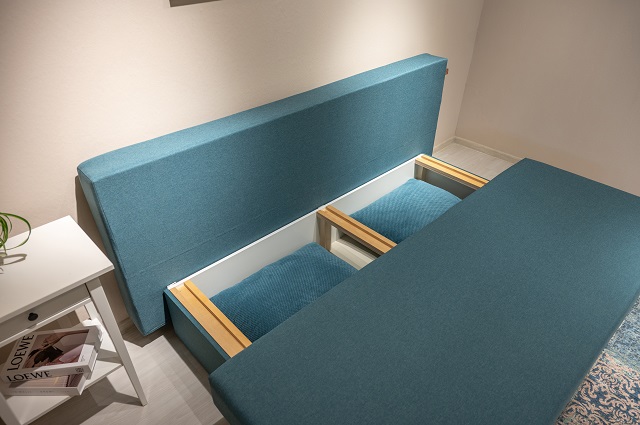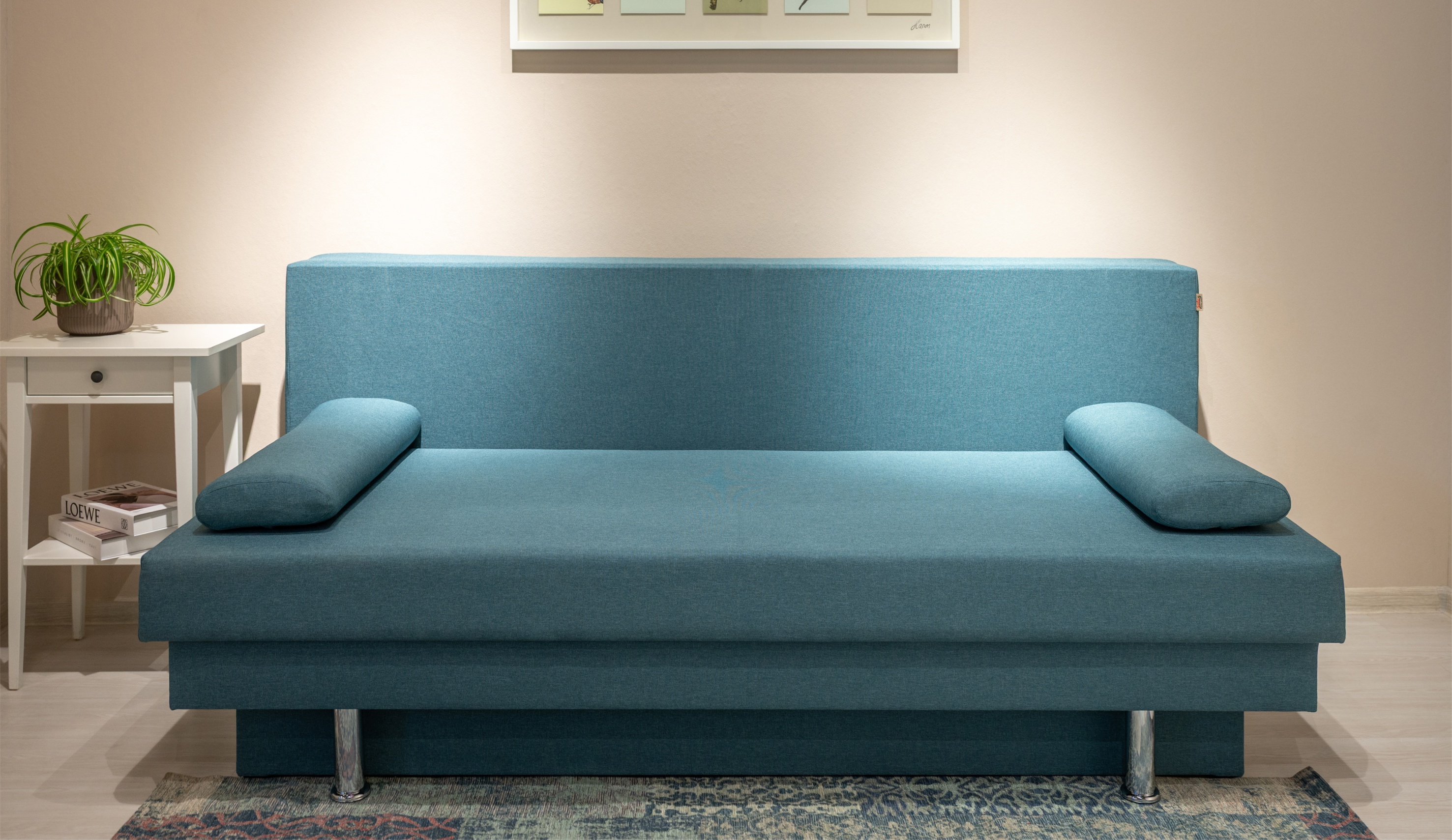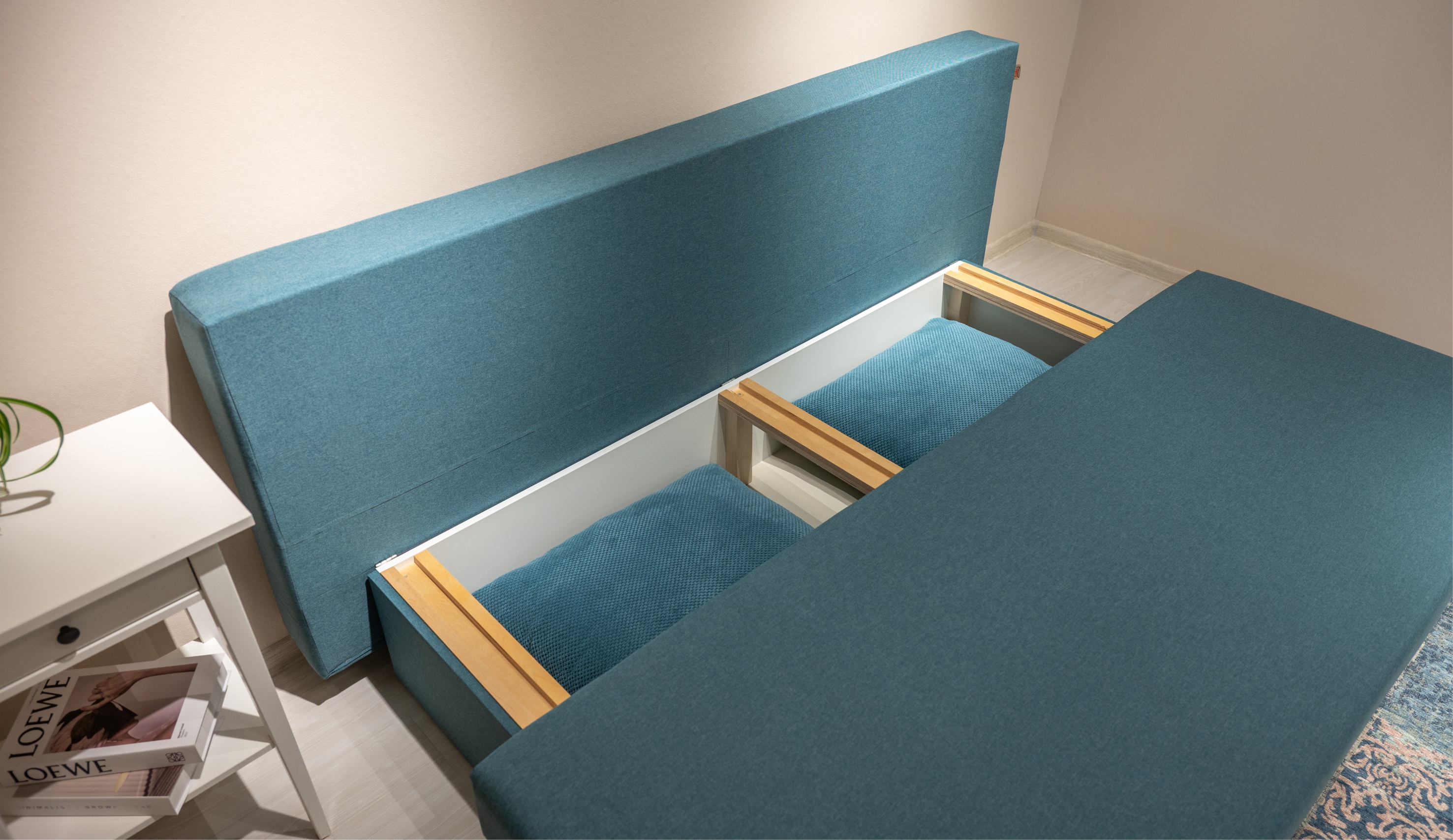 • Прочные ролики и фанерные направляющие позволяют быстро разложить диван в удобное спальное место