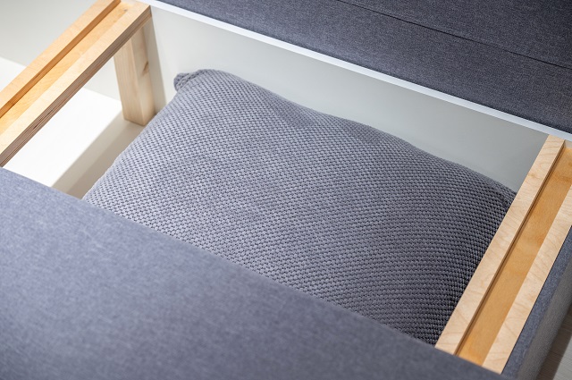 Вика" - это компактный диван со съемными подлокотниками, оснащенный независимым пружинным блоком. Приспинные подушки позволяют регулировать удобство посадки. С помощью механизма "еврокнижка" он образует просторное и ровное спальное место, удобно спать как на кровати с ортопедическим матрасом. Под посадочной частью дивана встроенный бельевой ящик без ограничения по весу для хранения.