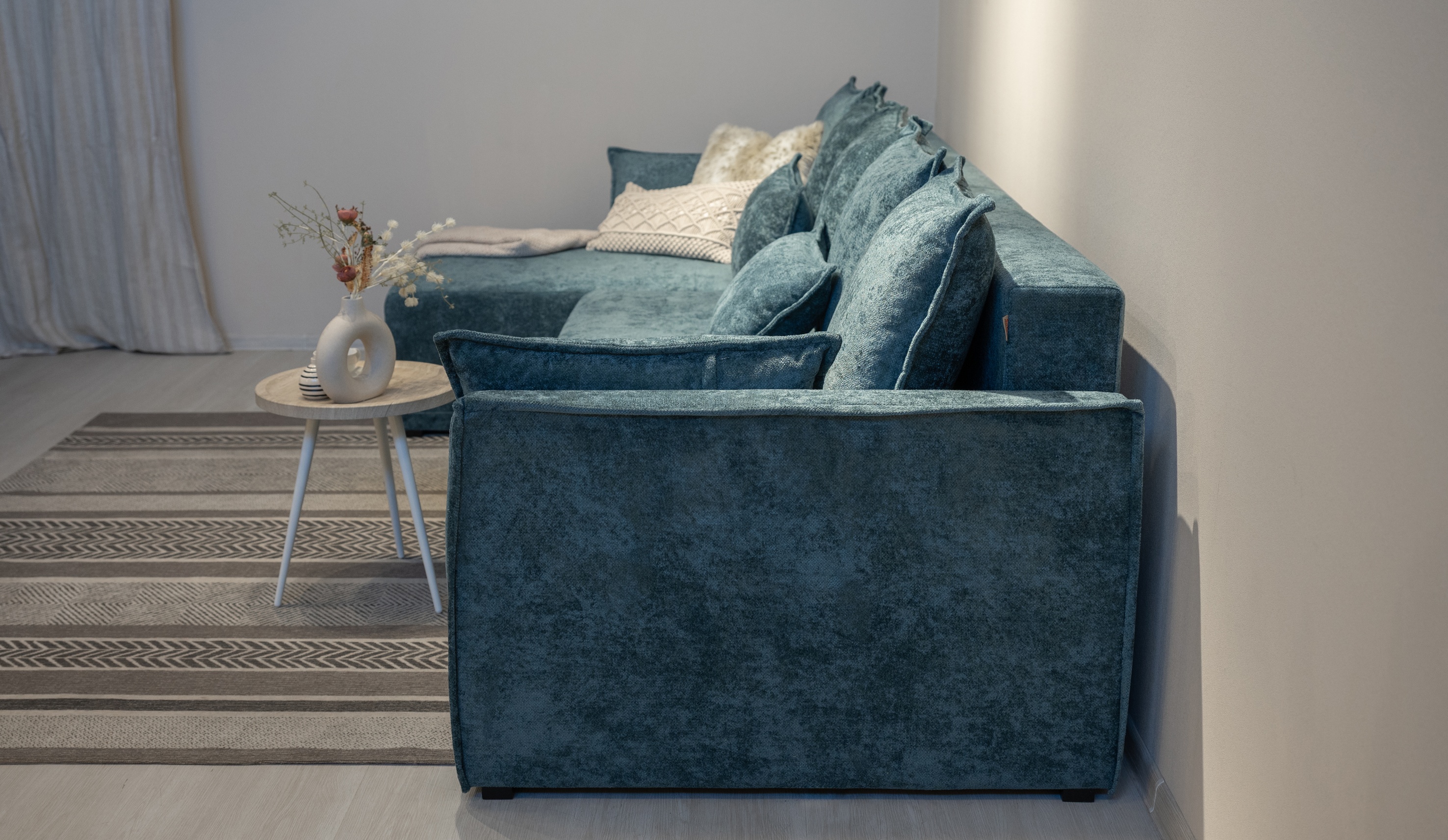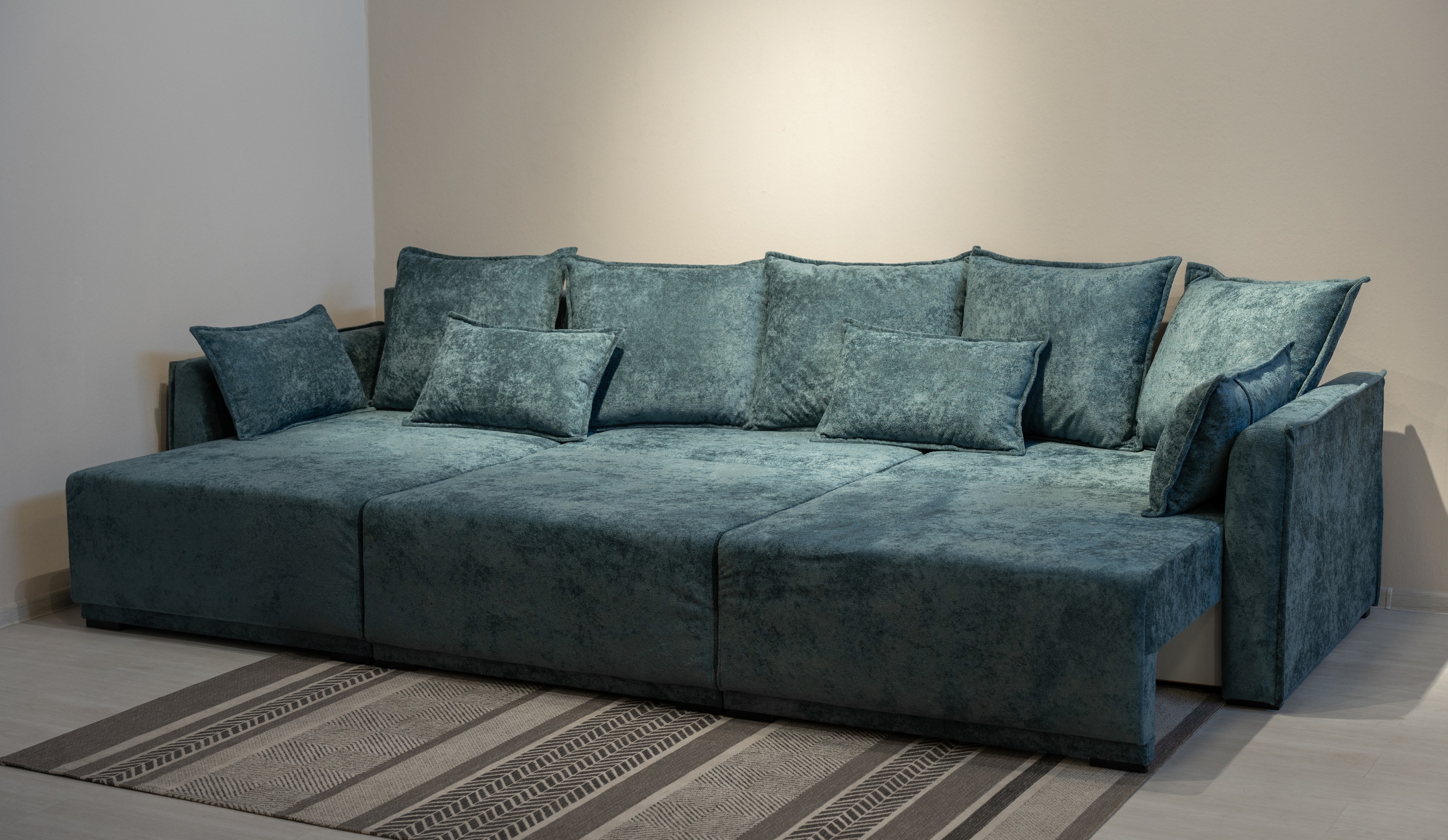 Нортон" - диван, который сочетает в себе современный эргономичный дизайн, мягкую комфортную посадку и функциональность. Обивка из премиального микрошенилла, имитирующая благородные минералы, добавит пространству глубину и блеск. Каждый элемент дивана, от широкого декоративного канта до модульных секций, продуман для максимального удобства и гибкости. Модульная конструкция предоставляет возможность изменять его в П-образную форму. Независимый пружинный блок и интегрированные бельевые ящики с вентиляцией обеспечивают комфорт и порядок в доме.