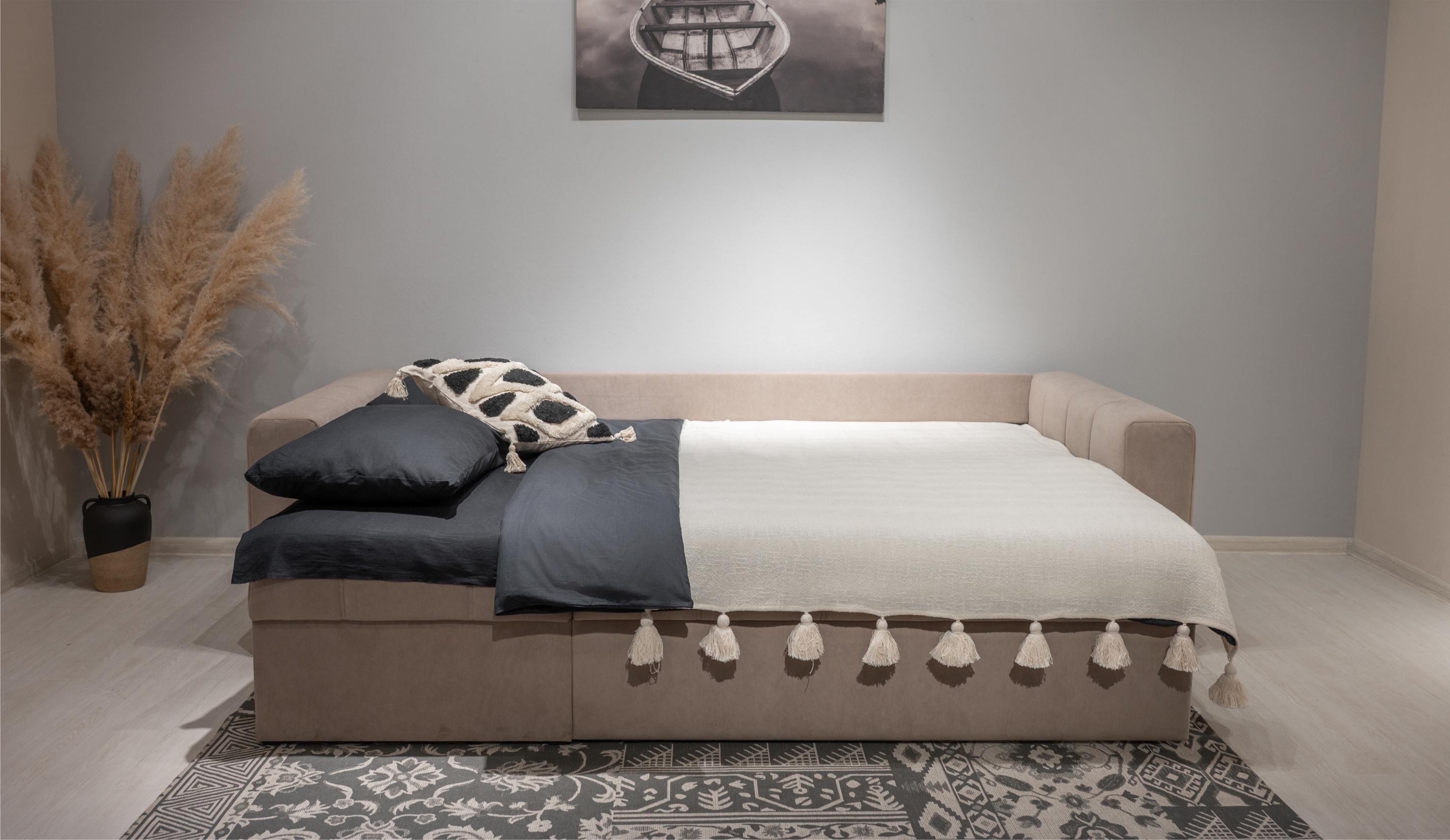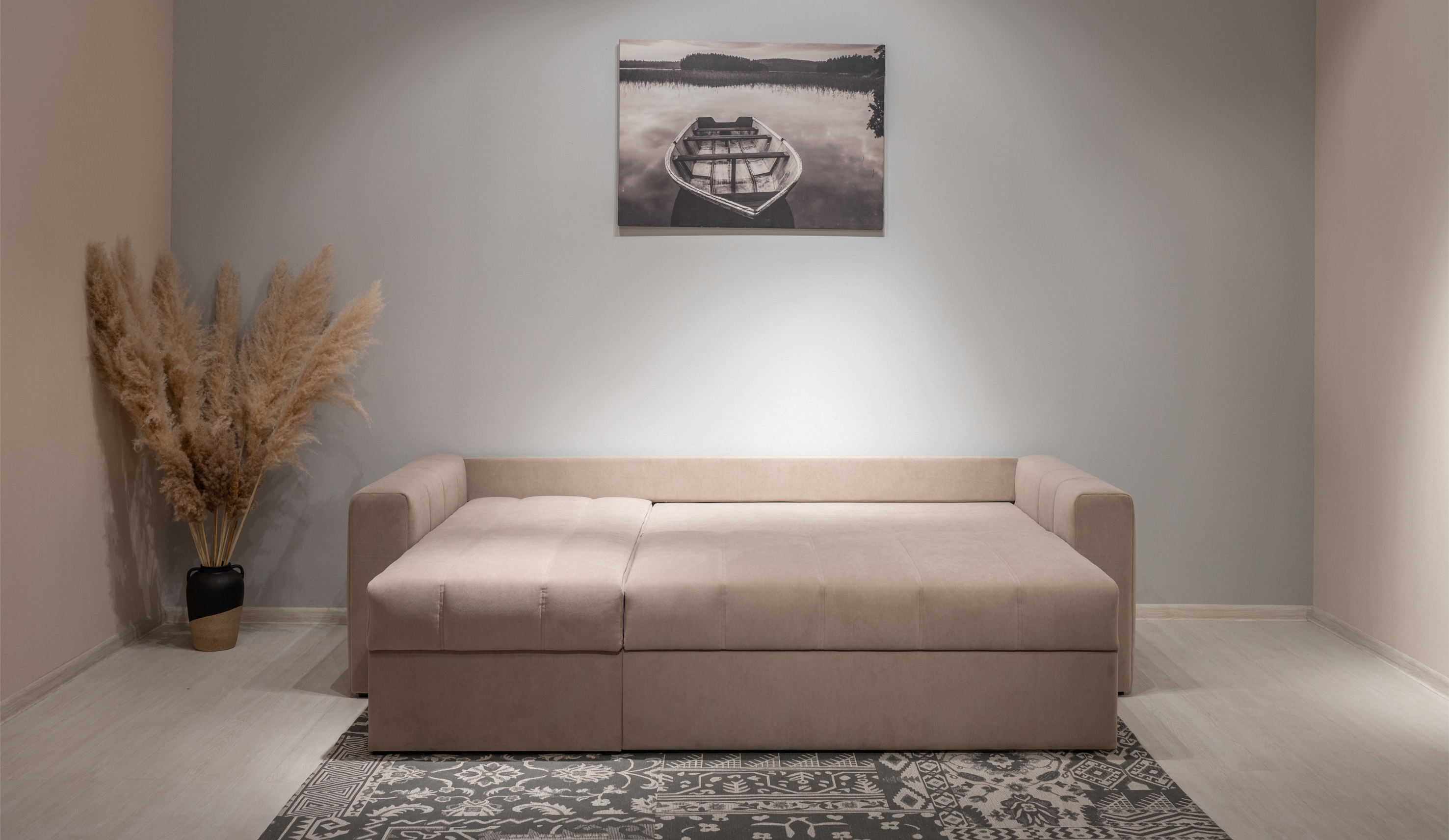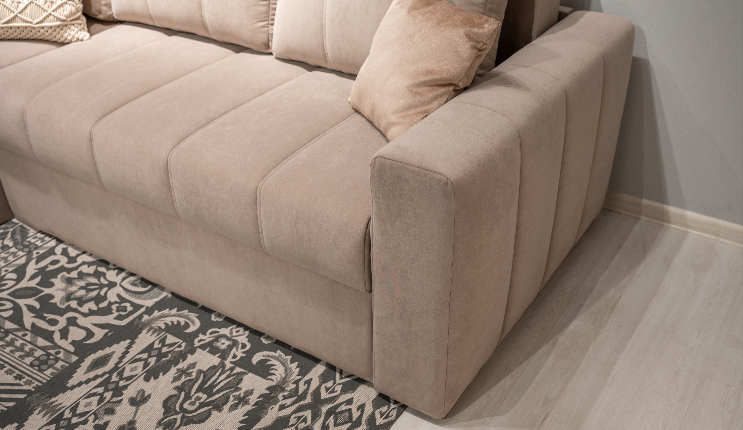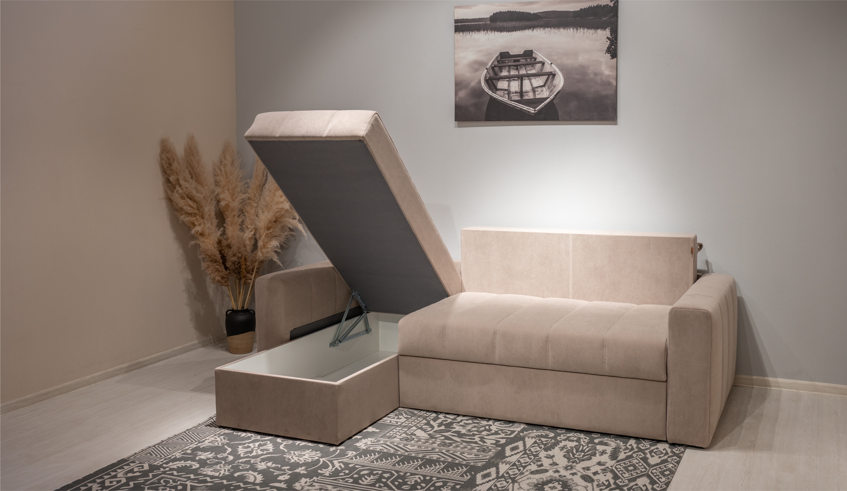 Стильный и практичный диван "Порту" разработан с учётом современных требований к комфорту и эргономике. Благодаря лаконичному дизайну с вертикальной стёжкой и мягким формам, он легко адаптируется под любой интерьер. Механизм трансформации обеспечивает быстрое и удобное превращение в спальное место с ортопедическим матрасом на независимых пружинах, способствующим полноценному отдыху. Универсальная конструкция оттоманки позволяет установить её с любой стороны, а просторный отсек для хранения под ней сопоставим по объёму с небольшим шкафом - идеальное решение для рационального использования пространства.