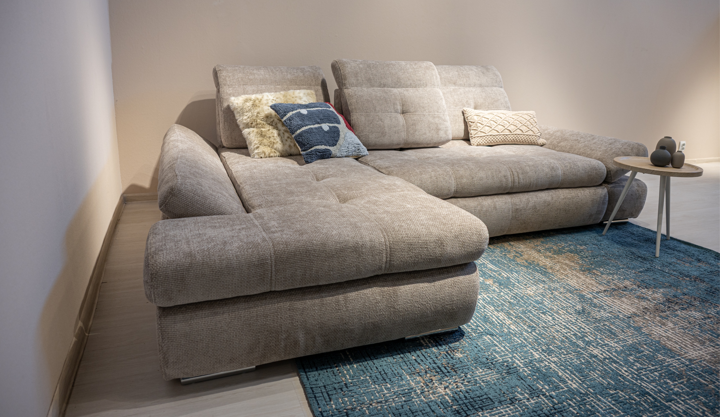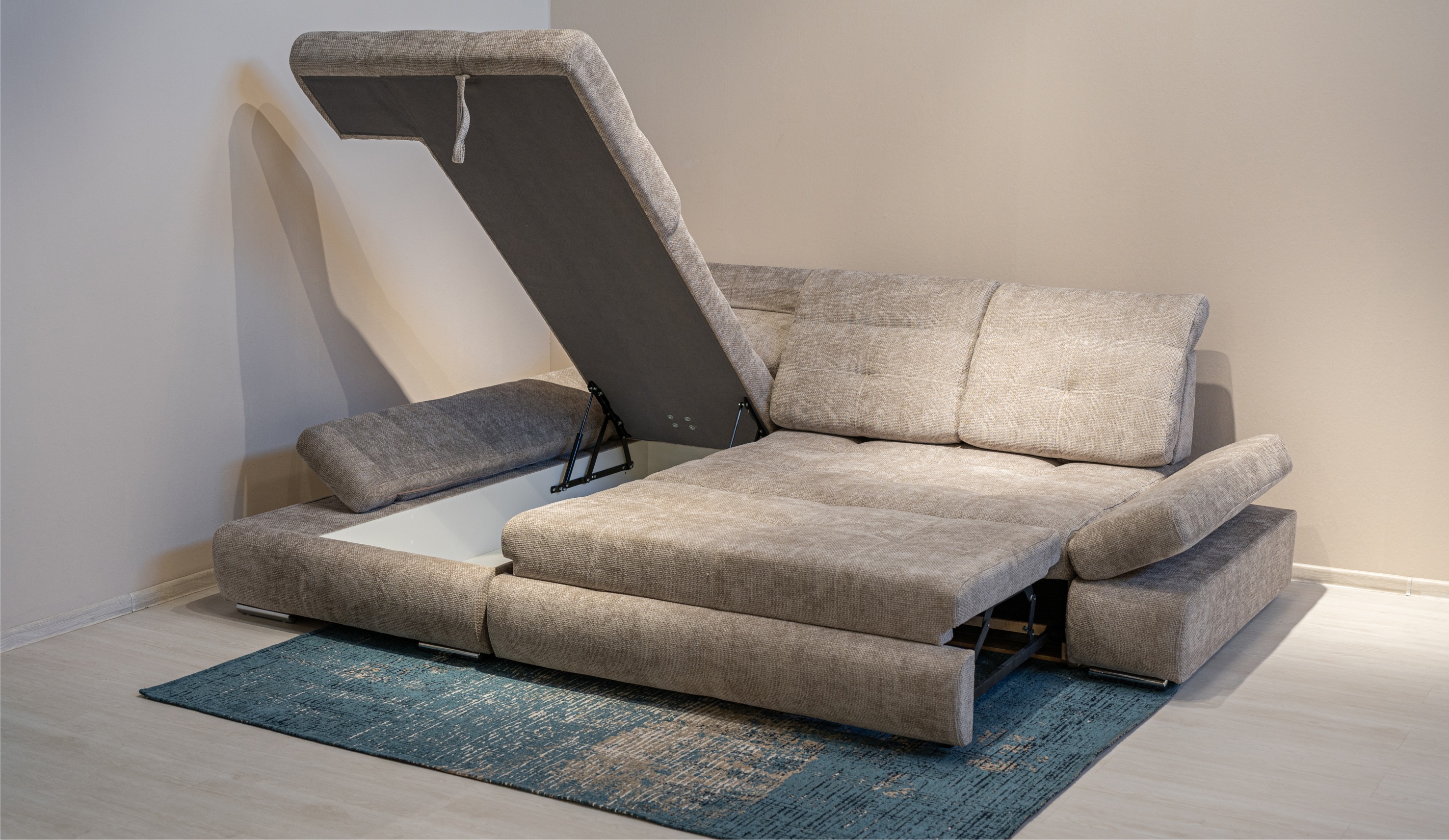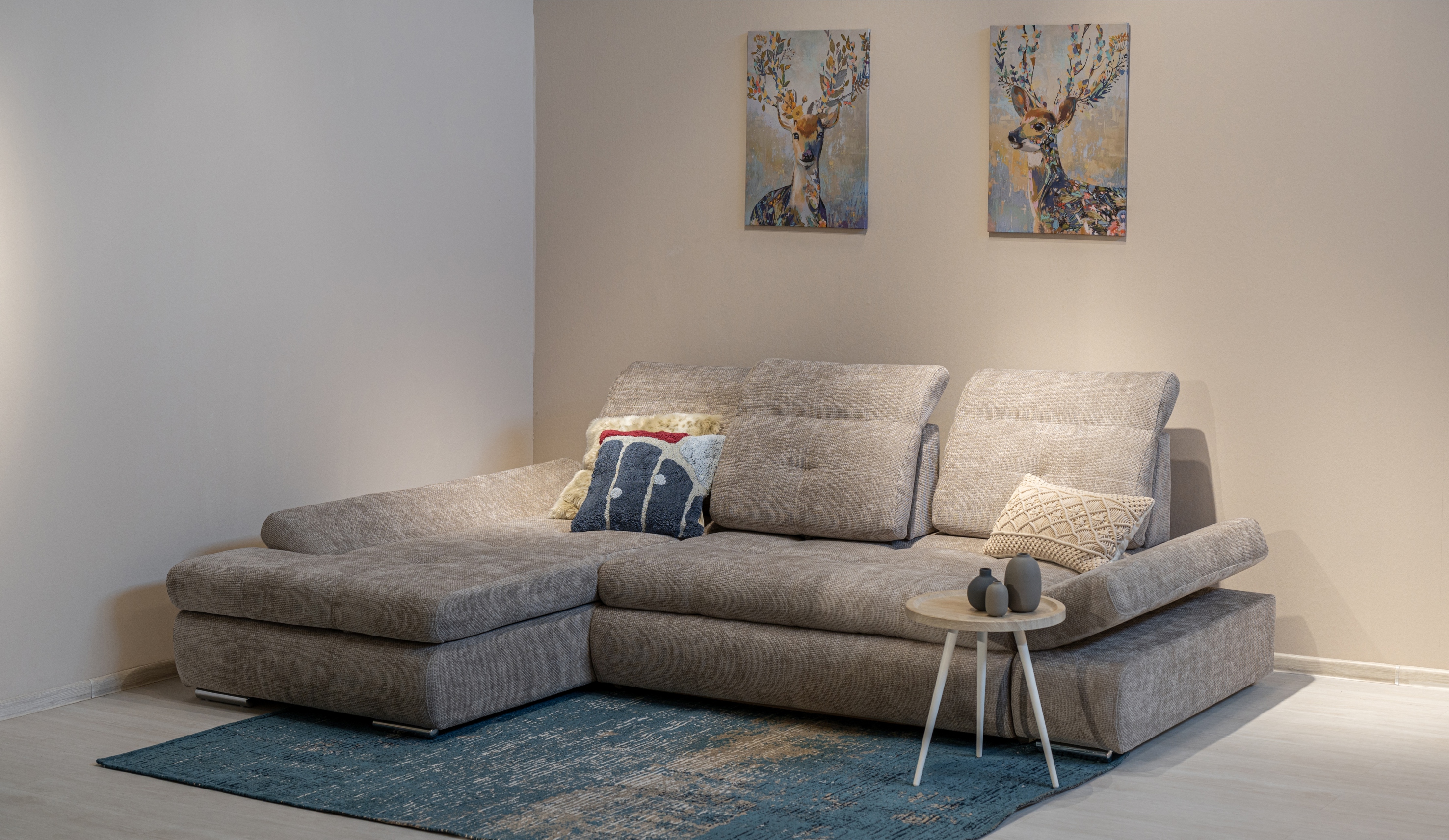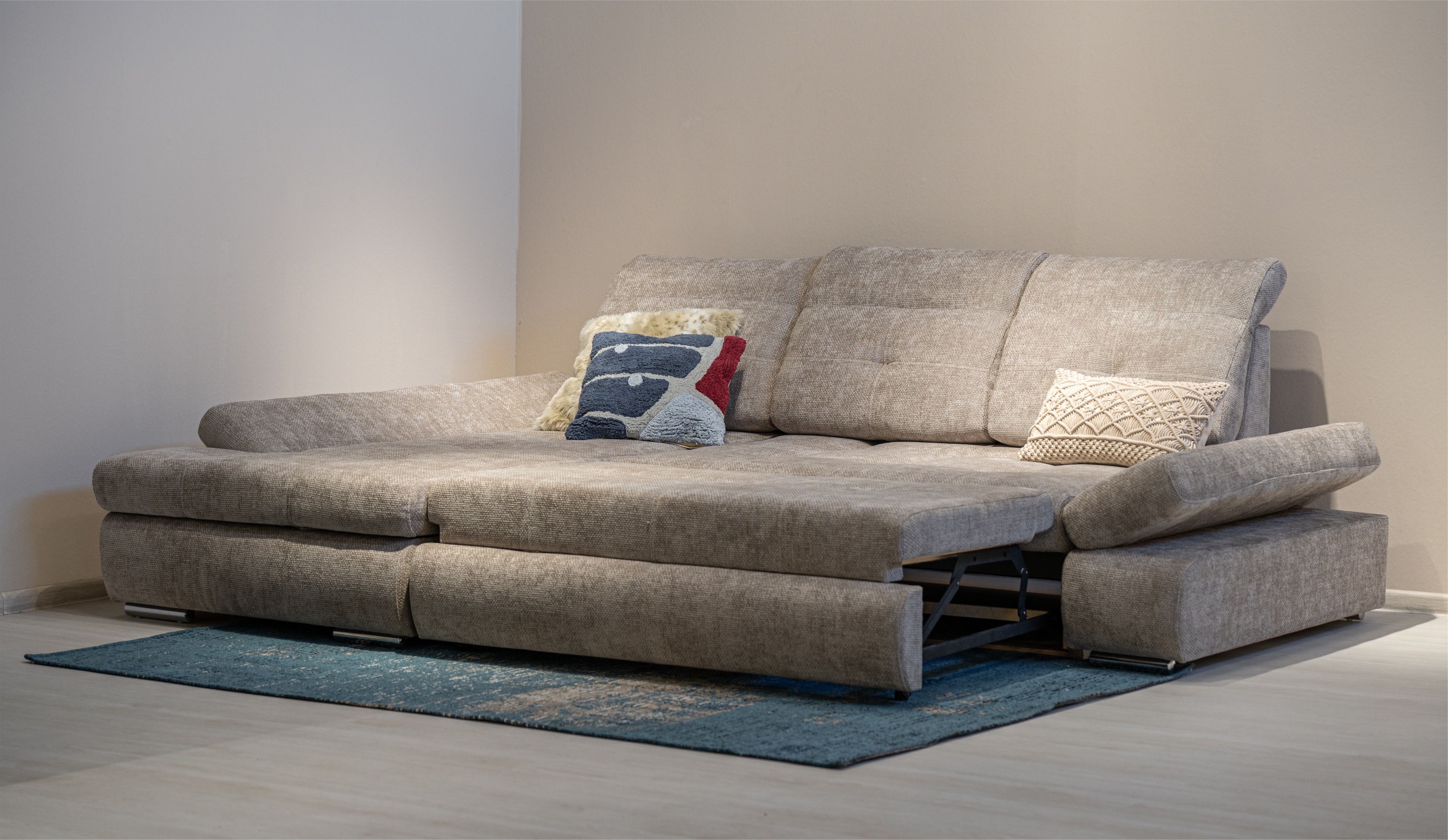 Диван "Сканди-2" сочетает в себе элегантность и высокий уровень функциональности. Благодаря надежным механизмам Hettich, вы можете менять глубину посадочного места под свои предпочтения. Регулируемые спинки и подлокотники с 8-ступенчатой настройкой угла наклона мягкой части обеспечивают персонализированную поддержку. Механизм "дельфин" превращает диван в удобное спальное место, а шезлонг с бельевой нишей предлагает дополнительное пространство для хранения. Стильные хромированные ножки подчеркивают современный и респектабельный вид.
