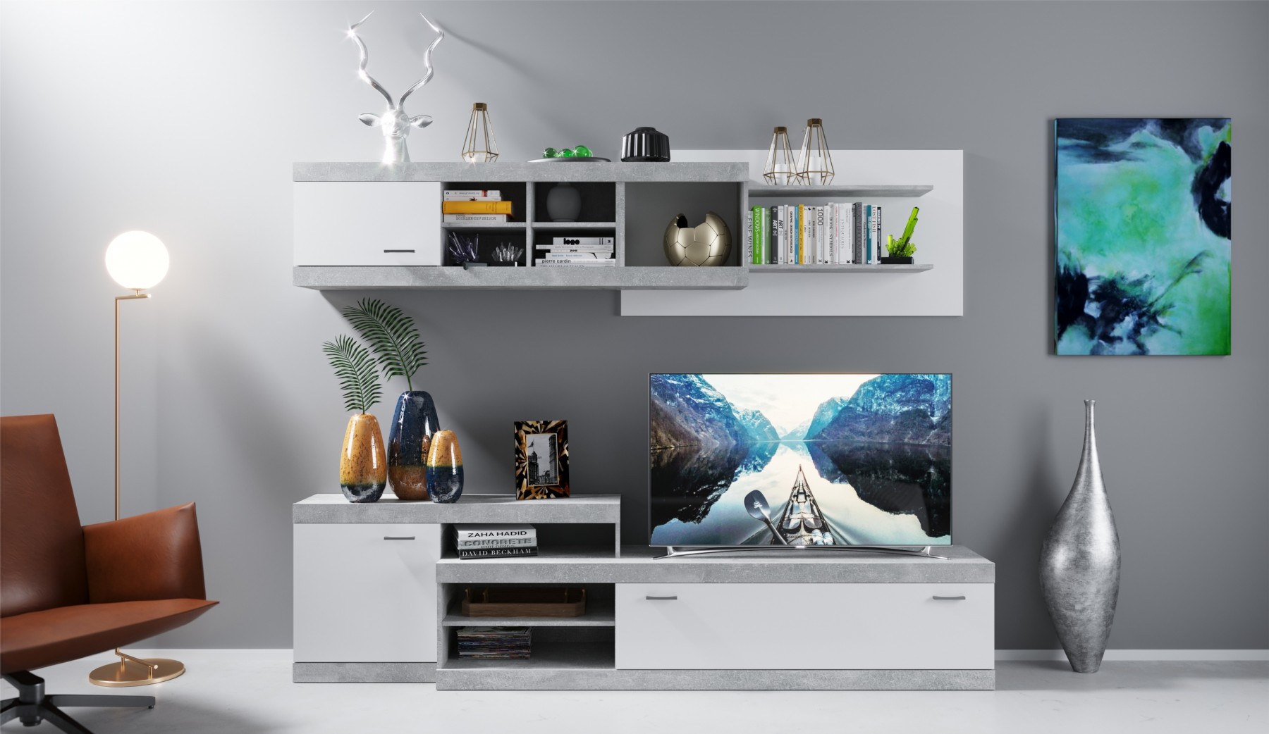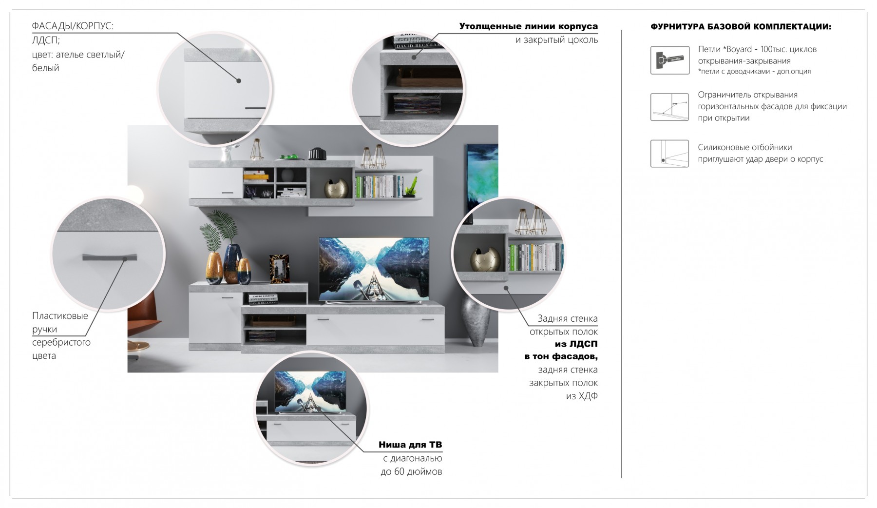 Гостиная Домино – оригинальный дизайн, строгая геометрия линий и форм. Корпус выполнен в светлых нейтральных тонах, поэтому легко сочетать эту стенку в гостиной с другими предметами мебели – столами, журнальными столами, стеллажами или комодами. Благодаря небольшим размером, найдет своё место в любой квартире.