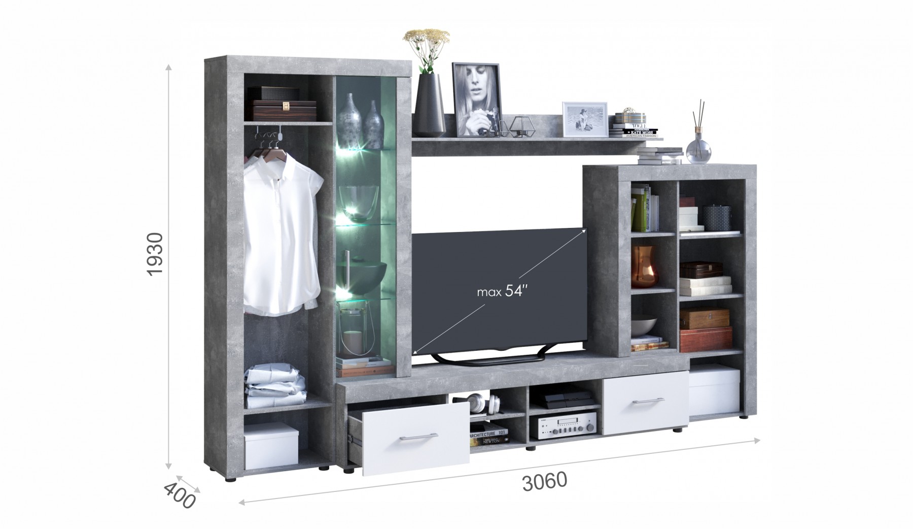 Ниша для телевизора рассчитана на модели с диагональю до 54 дюймов, позволяет комфортно смотреть любимые фильмы и передачи на широком экране, наслаждаясь полноценным отдыхом
