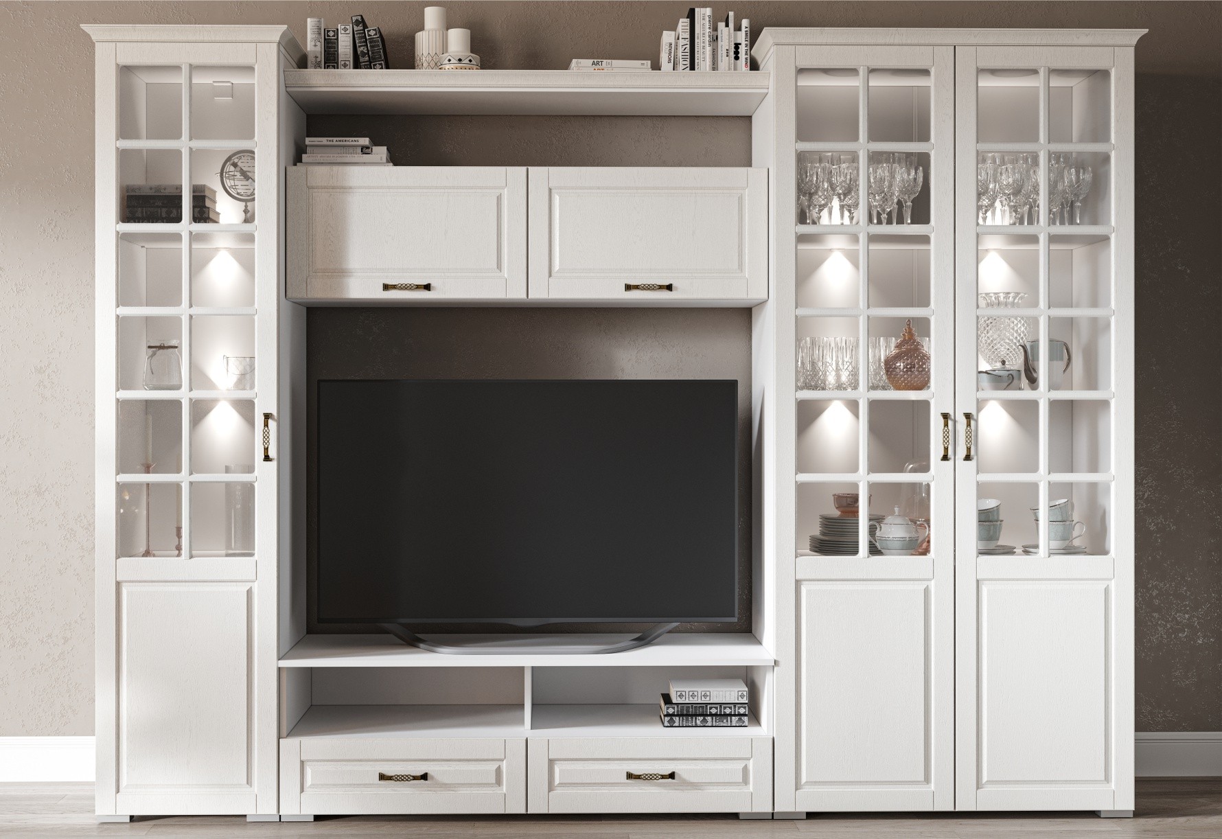 Изысканная стенка Лацио, выполненная в стиле неоклассики, является идеальным выбором для тех, кто ценит эстетику и функциональность. Элегантные фасады из МДФ, имитирующие текстуру натурального дерева, придают дизайну теплоту и уникальность, а белоснежный цвет декора визуально расширяет пространство, создавая ощущение легкости и свежести. Ручки и фигурный карниз, дополняют образ, делая его гармоничным и цельным. Вариантивность модулей позволяет выбрать оптимальный вариант для вашего пространства.