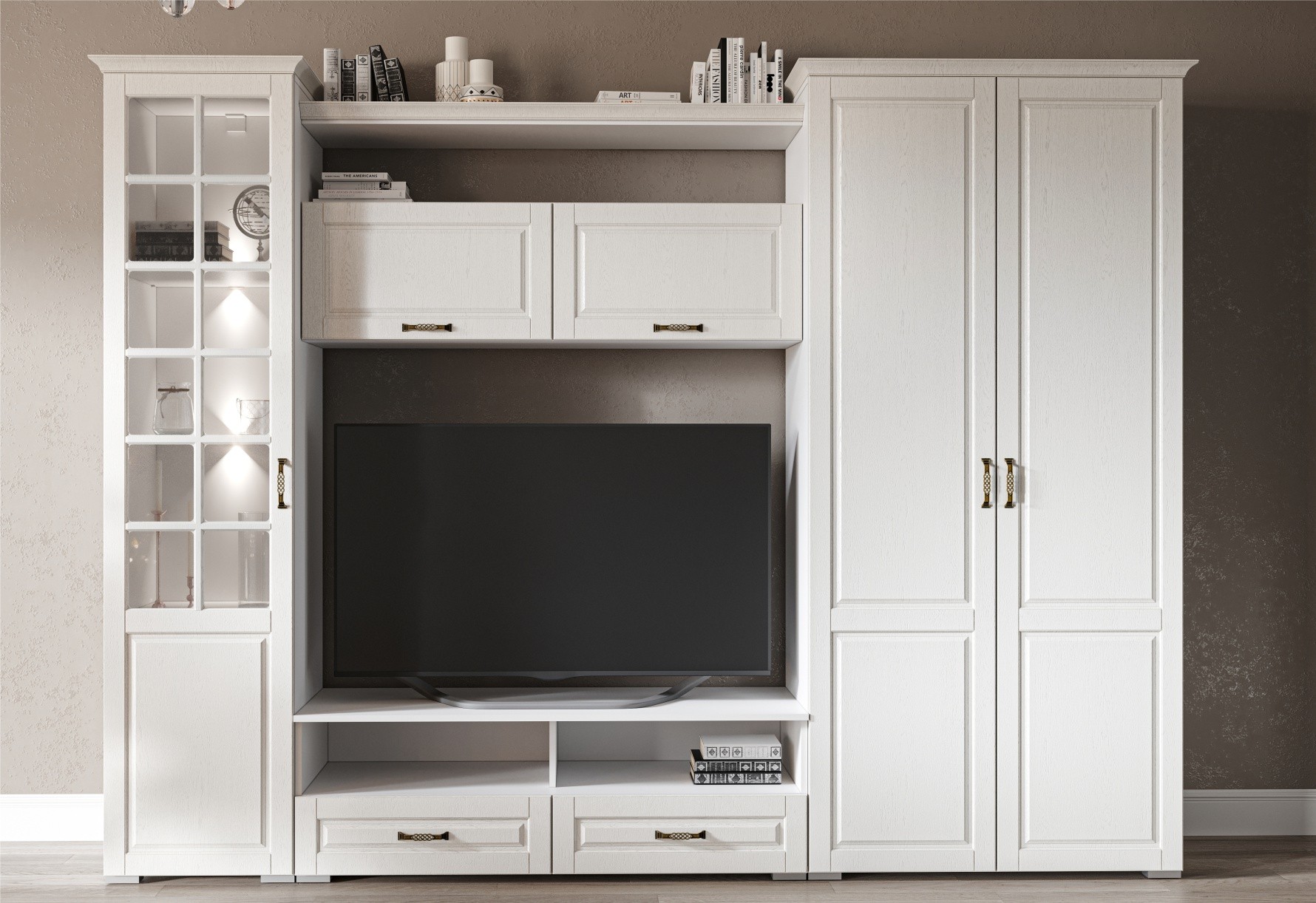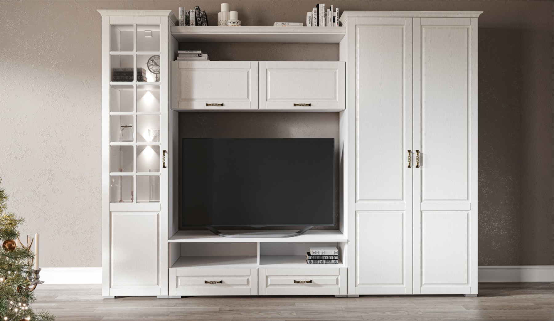 Изысканная стенка Лацио, выполненная в стиле неоклассики, является идеальным выбором для тех, кто ценит эстетику и функциональность. Элегантные фасады из МДФ, имитирующие текстуру натурального дерева, придают дизайну теплоту и уникальность, а белоснежный цвет декора визуально расширяет пространство, создавая ощущение легкости и свежести. Ручки и фигурный карниз, дополняют образ, делая его гармоничным и цельным. Вариантивность модулей позволяет выбрать оптимальный вариант для вашего пространства.