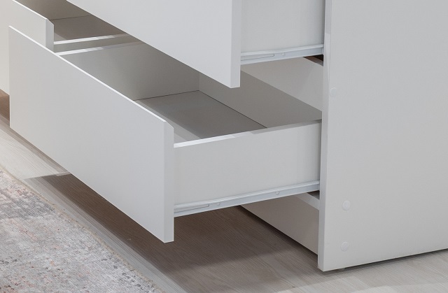 Система комодов на роликовых направляющих обеспечивает лёгкое открытие и увеличивает полезное пространство, помогая поддерживать порядок. Доступные варианты: