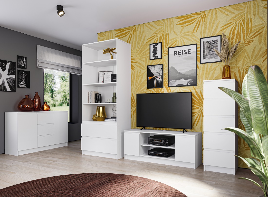 Гостиная "Оникс" открывает возможность оформить помещение в эклектичном стиле, гармонично сочетающем различные направления дизайна и яркие цветовые акценты. Нейтральная цветовая гамма создает атмосферу спокойствия и умиротворенности. Скошенные фасады ящиков добавляют интерьеру динамики и делают его визуально привлекательным. Механизм Push to open гарантирует легкое открытие и закрытие дверей шкафа одним нажатием, сохраняя поверхности чистыми и безопасными в эксплуатации. Модульность гостиной позволяет гибко адаптировать расположение элементов мебели, создавая условия как для отдыха, так и для работы.