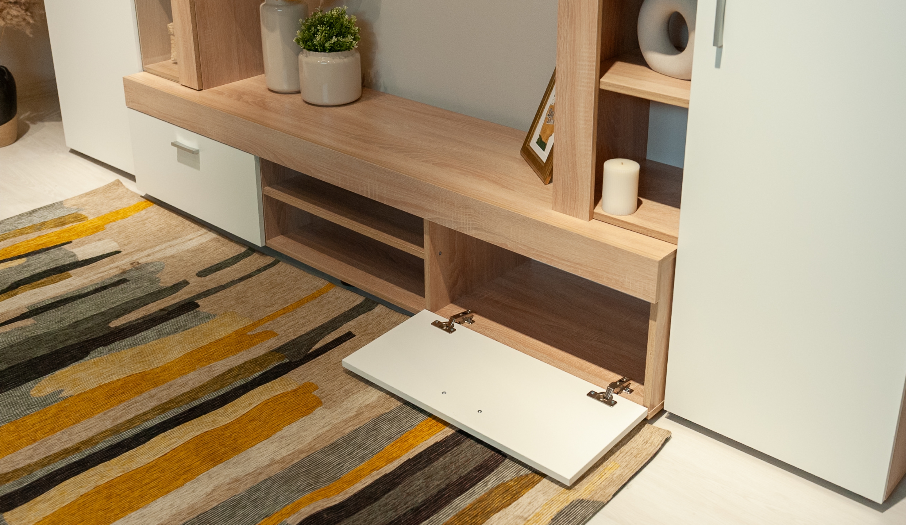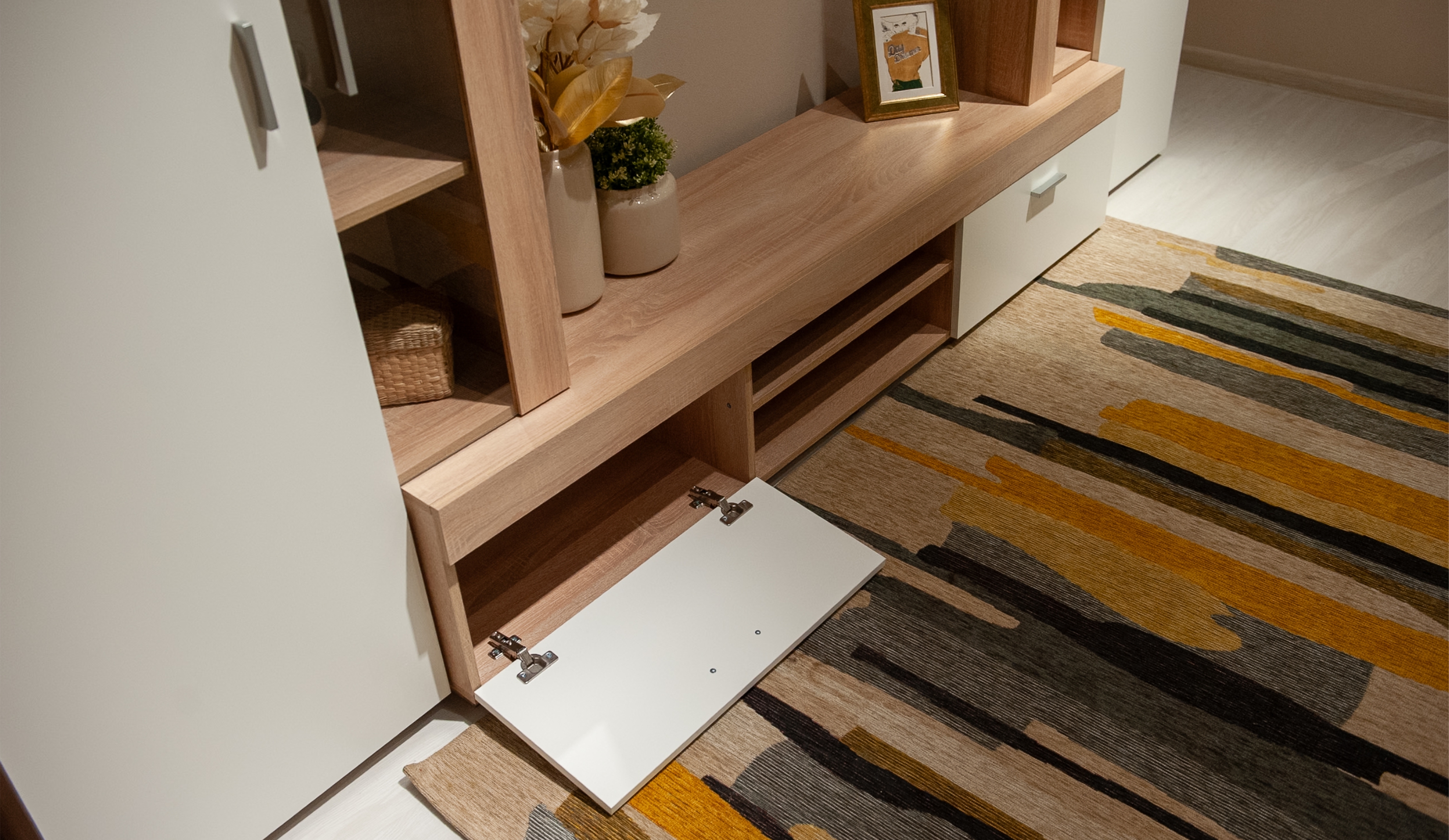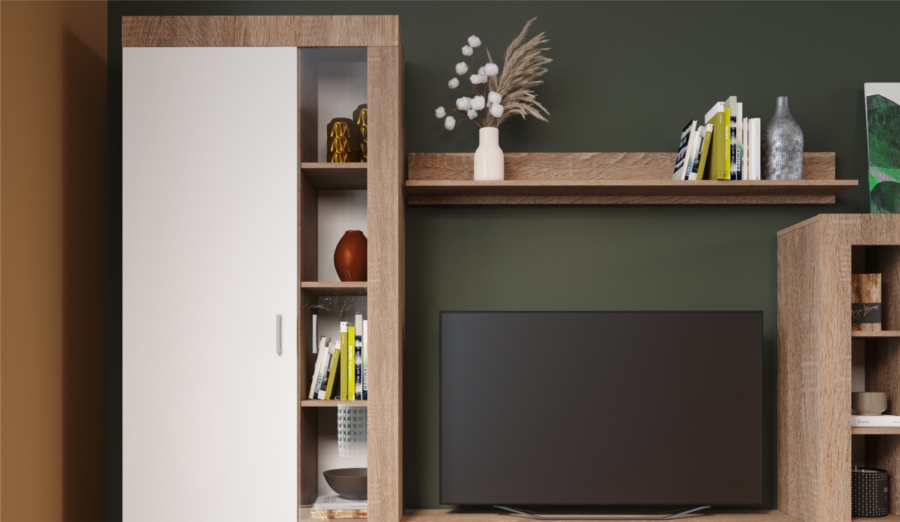Ниша для телевизора рассчитана на модели с диагональю до 50 дюймов, позволяет комфортно смотреть любимые фильмы и передачи на широком экране, наслаждаясь полноценным отдыхом