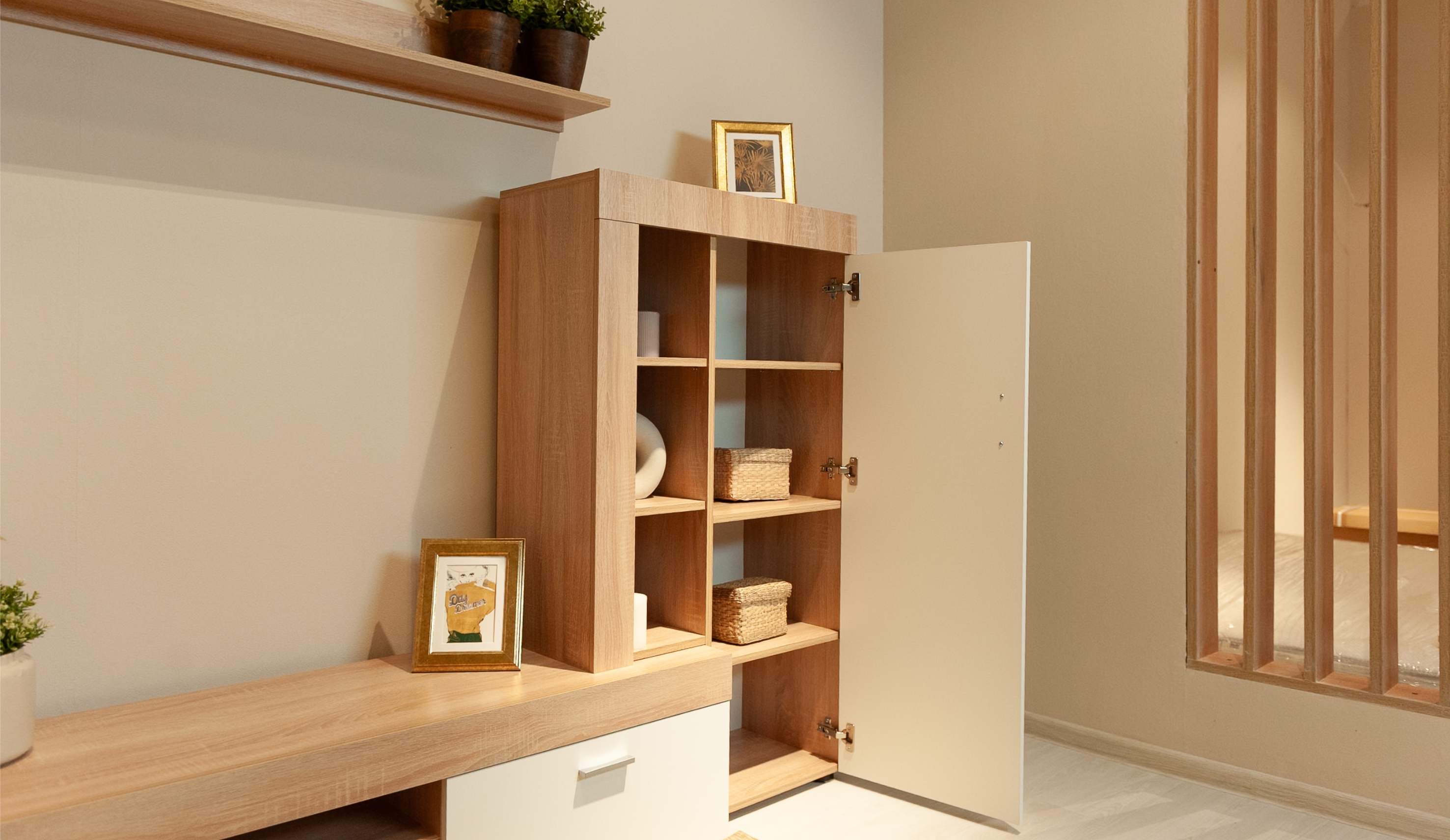 Открытые полки и витрина