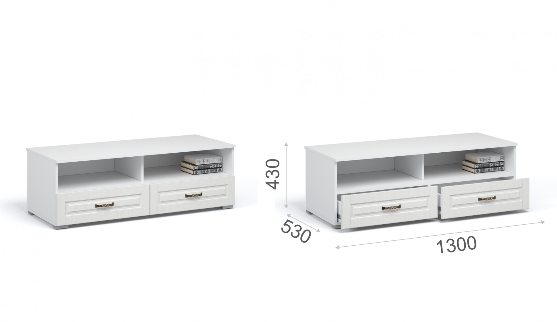 Тумба Лацио - идеальное дополнение для гостиных, подходит под ТВ с диагональю до 58 дюймов. Оснащена полками для медиаустройств и двумя ящиками на направляющих полного выдвижения, обеспечивает удобное хранение аксессуаров. Белоснежные МДФ фасады с фрезеровкой под дерево визуально расширяют пространство, а металлические ручки подчеркивают стиль. Экологически безопасные материалы подчеркивают заботу о здоровье и окружающей среде. Тумба гармонично сочетается с элементами коллекции "Лацио", создавая стильный и функциональный интерьер.